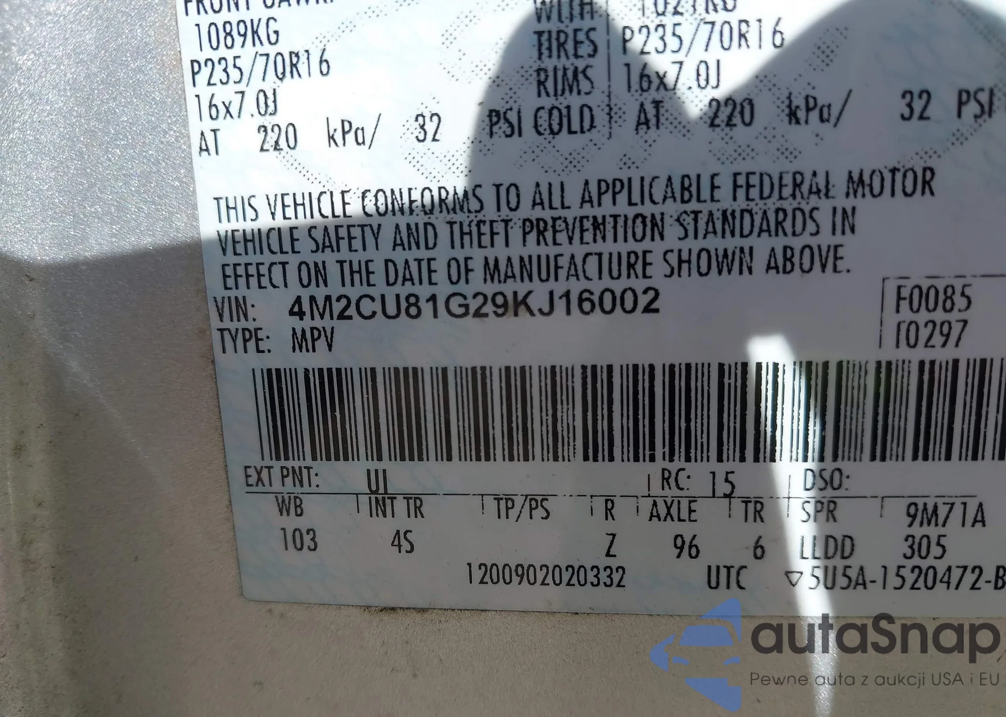 VIN: 4M2CU81G29KJ16002