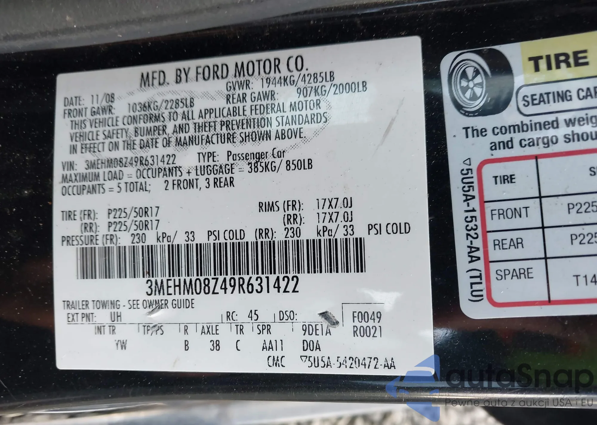 • Make: 2009 Mercury Milan I4...