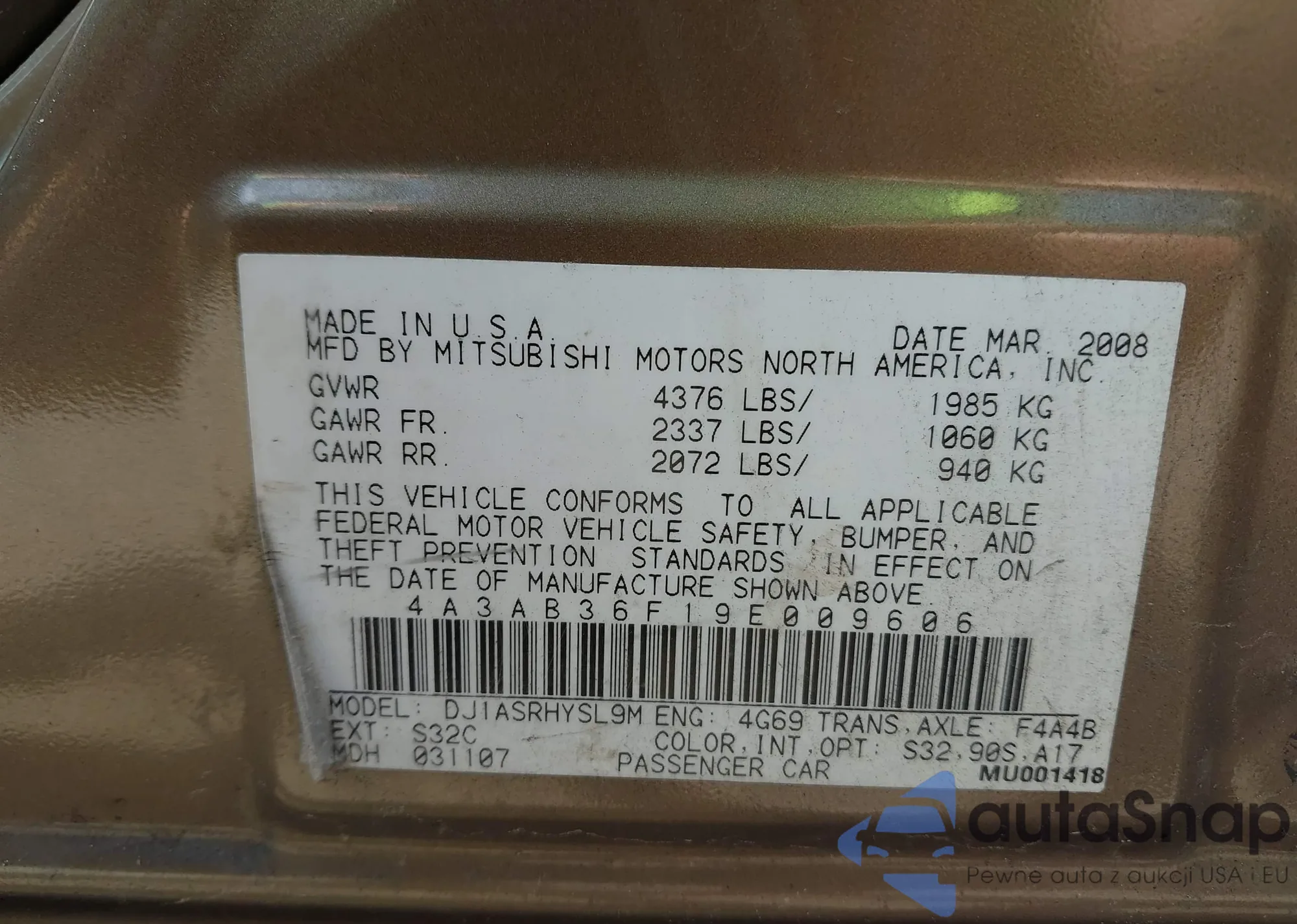 VIN: 4A3AB36F19E009606