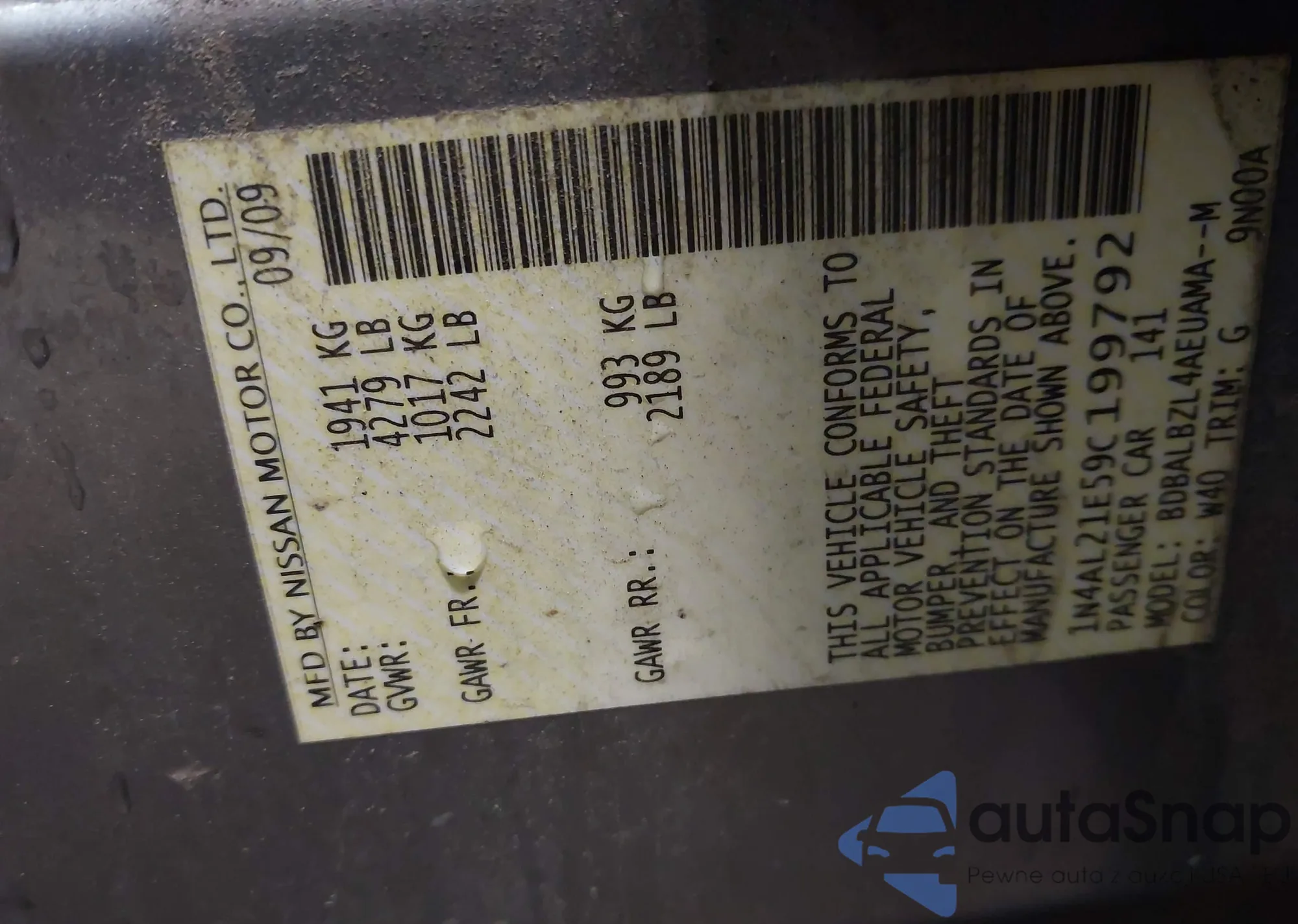 VIN: 1N4AL21E59C199792