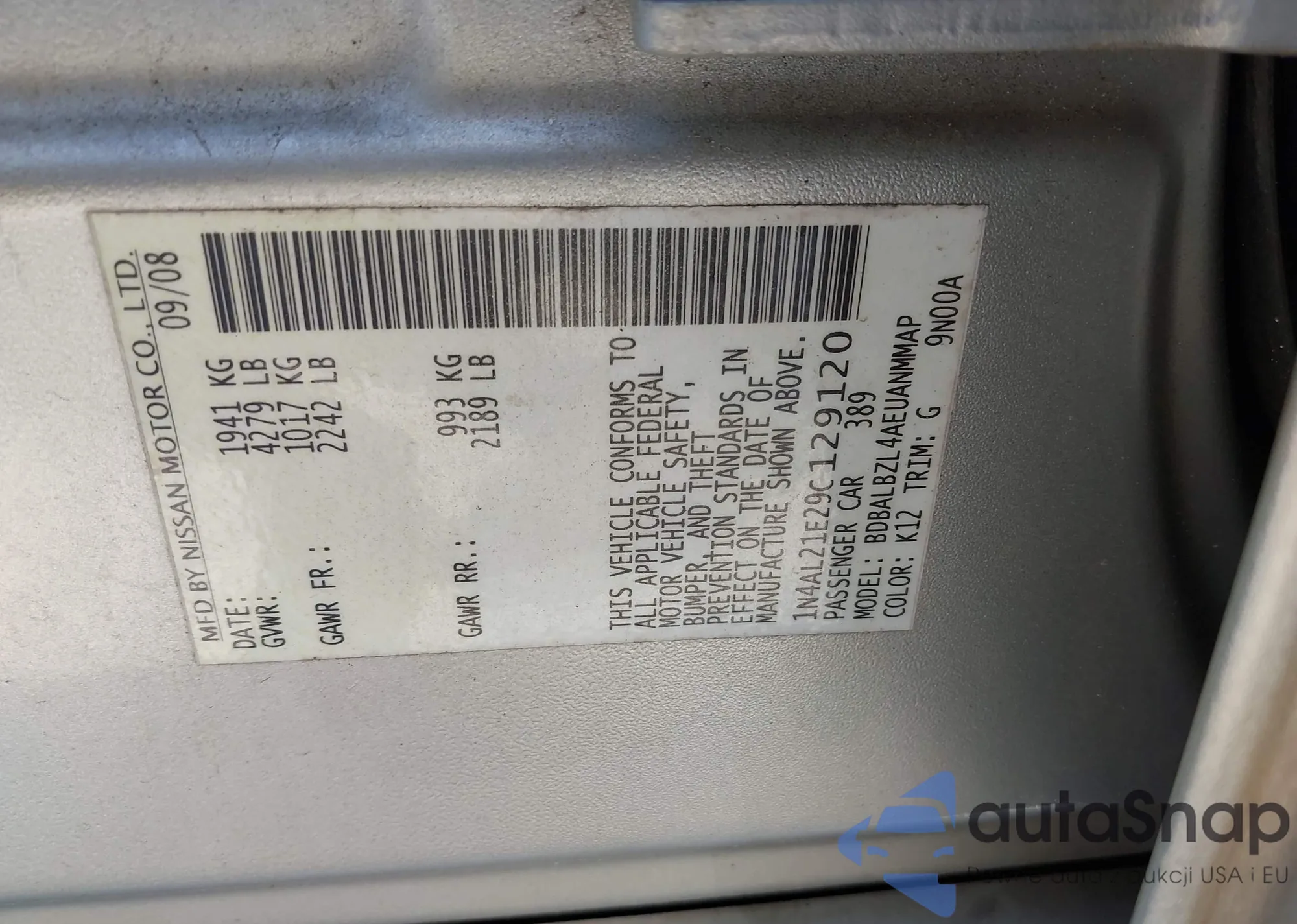 VIN: 1N4AL21E29C129120
