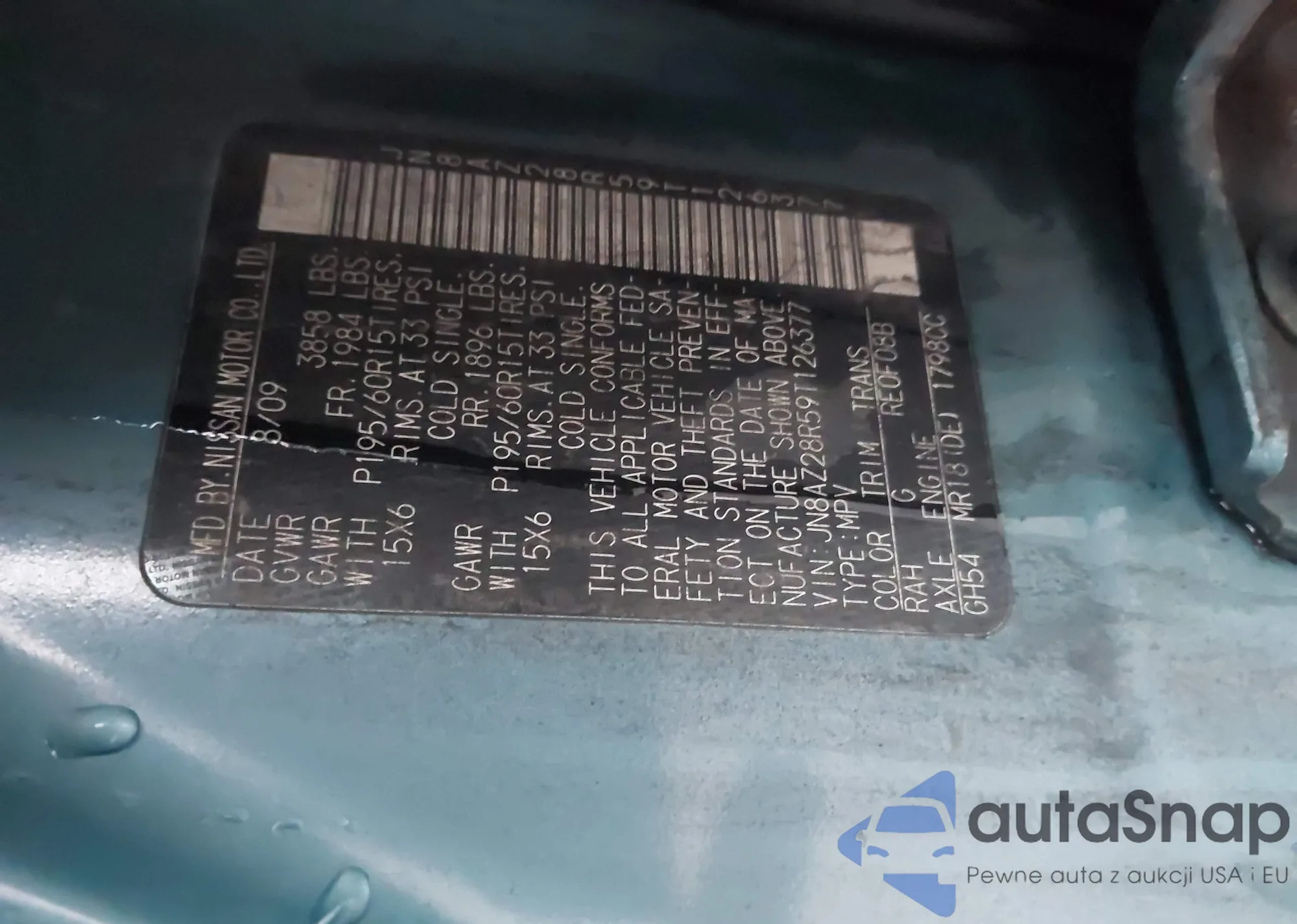 VIN: JN8AZ28R59T126377