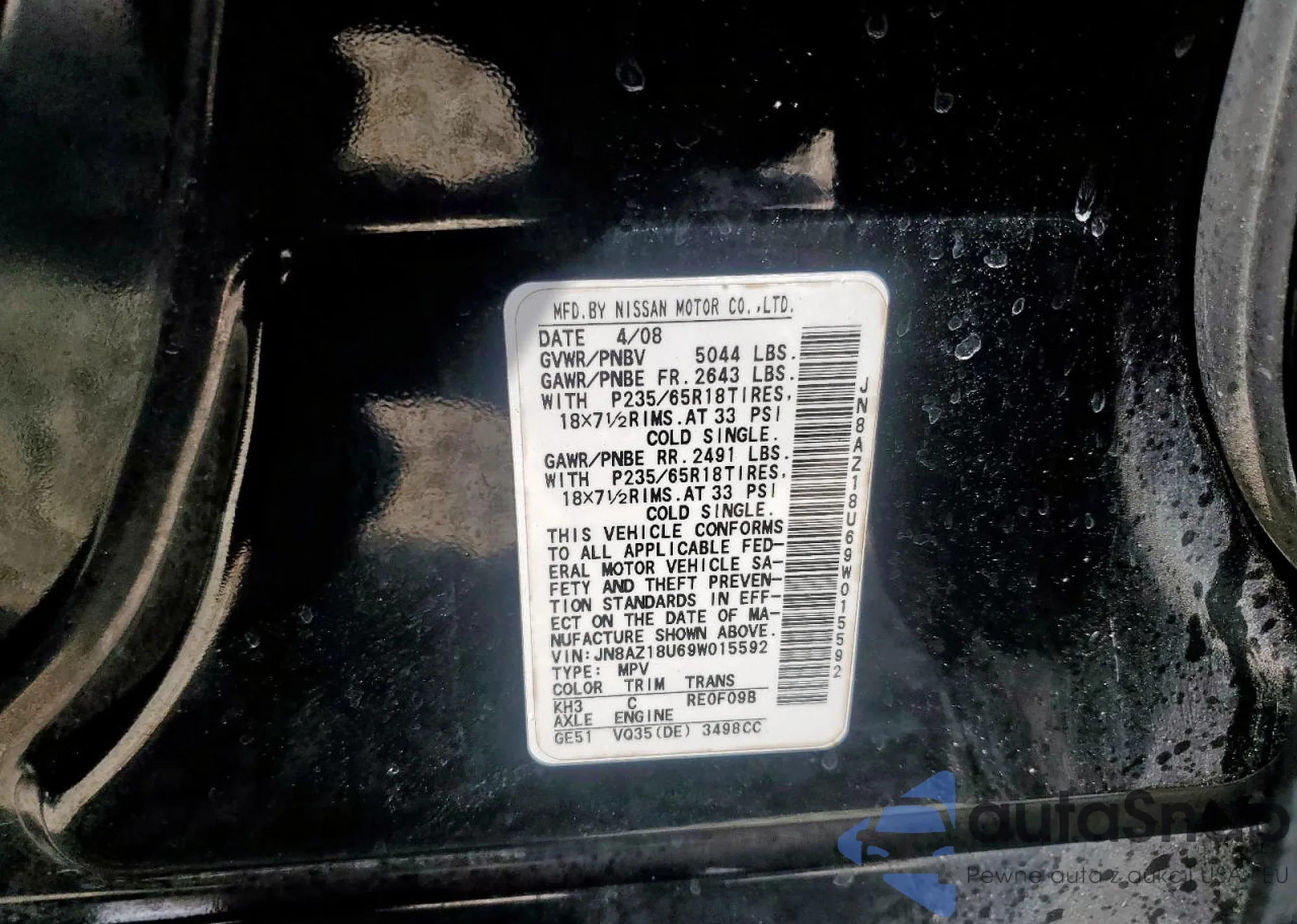 The car Nissan Murano 2009 (VIN JN8AZ18U69W015592) is sold by an unverified seller. We recommend checking the Carfax report and confirming registration possibilities before purchase.
