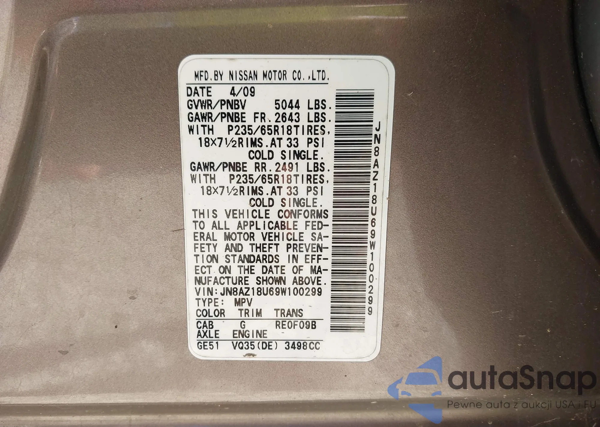 The car Nissan Murano 2009 (VIN JN8AZ18U69W100299) is sold by an unverified seller. We recommend checking the Carfax report and confirming registration possibilities before purchase.