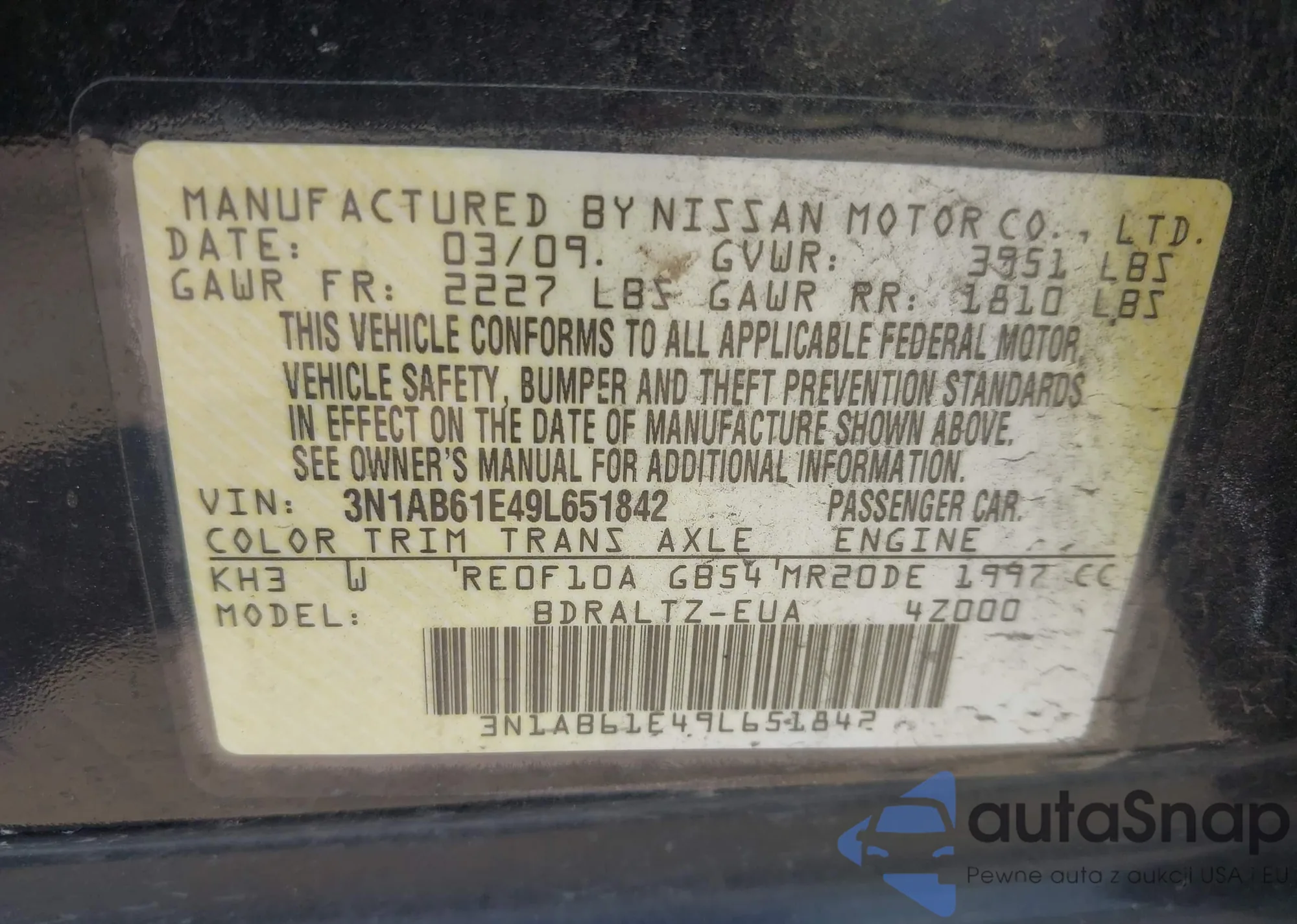 VIN: 3N1AB61E49L651842