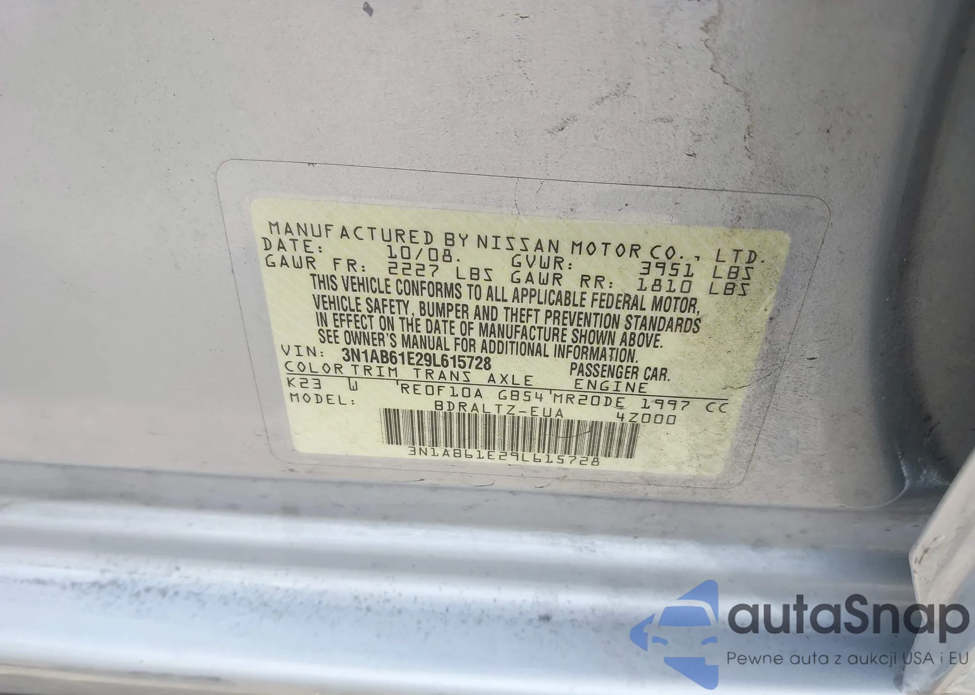 VIN: 3N1AB61E29L615728
