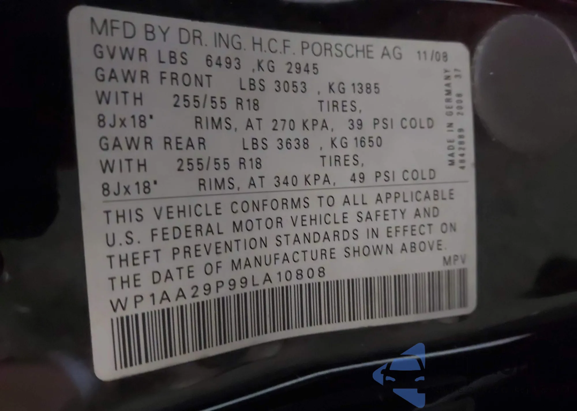 VIN: WP1AA29P99LA10808