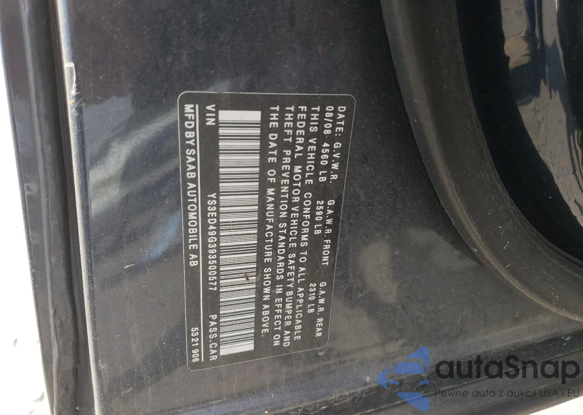 • VIN: YS3ED49G393500577