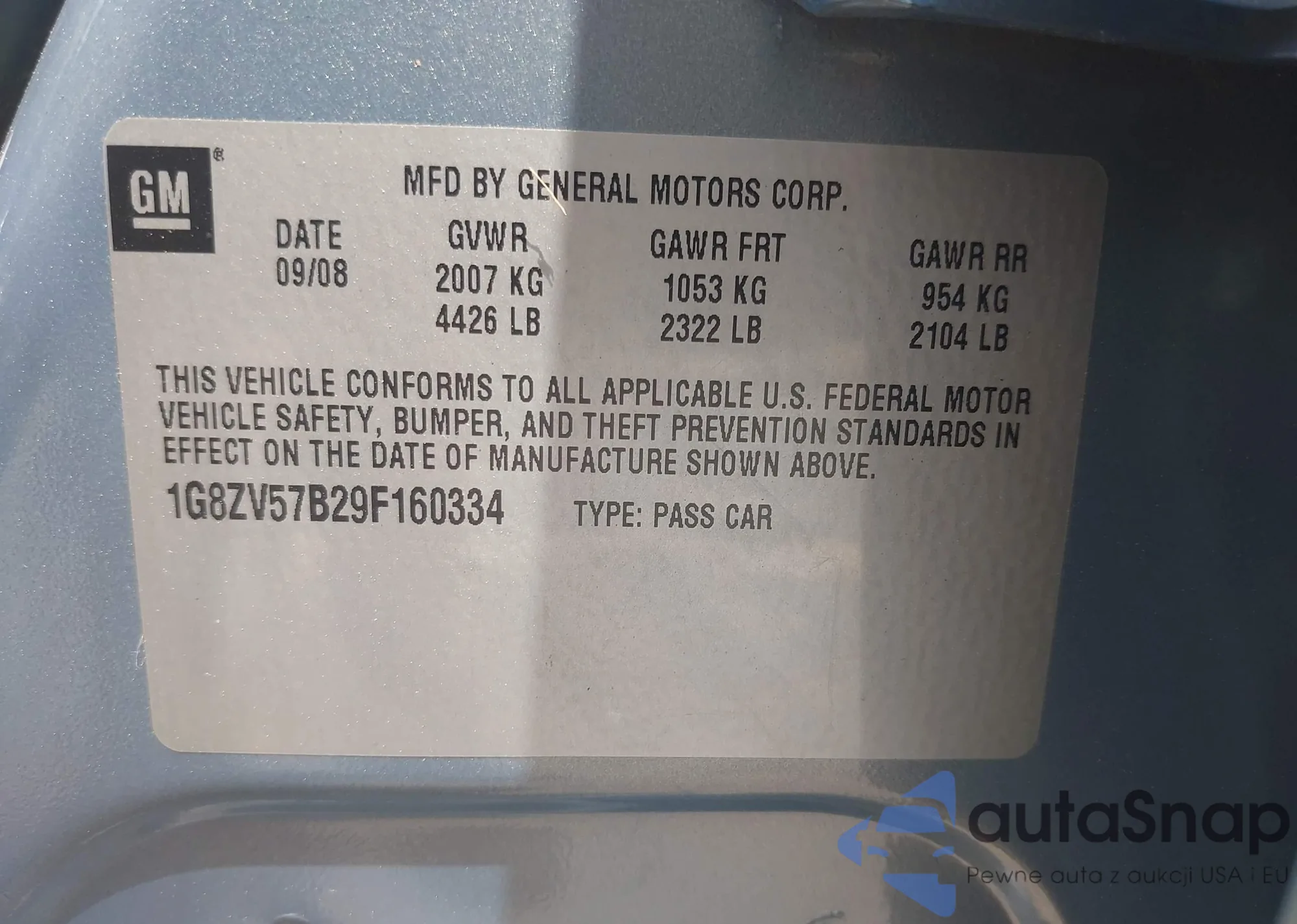 VIN: 1G8ZV57B29F160334