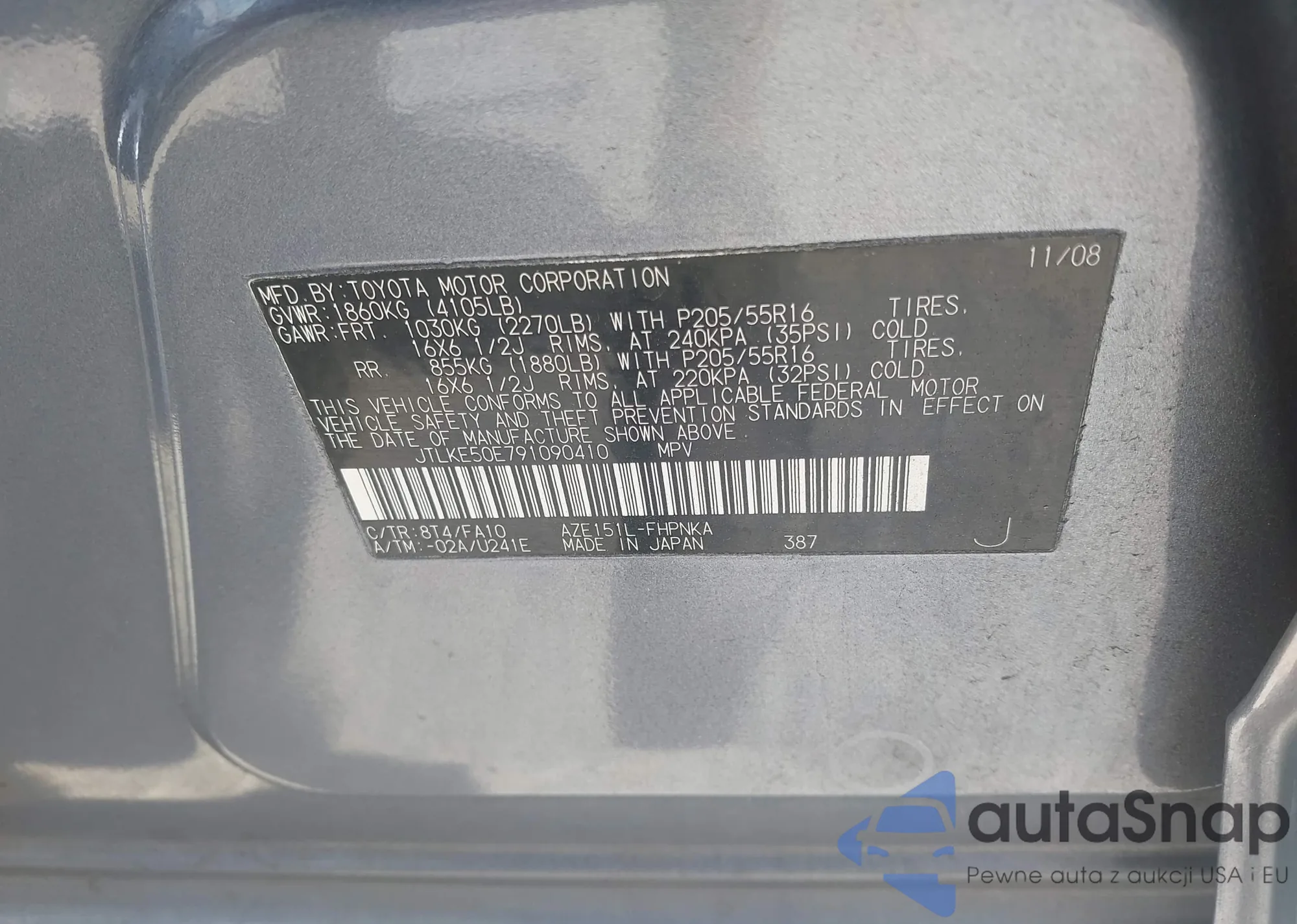 The car Scion xB 2009 (VIN JTLKE50E791090410) has documents that prevent registration. Export and registration may be difficult. Contact AutaSnap experts to find alternatives.