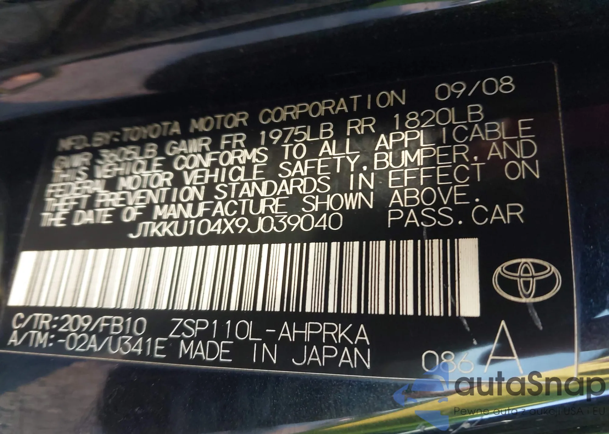 VIN: JTKKU104X9J039040