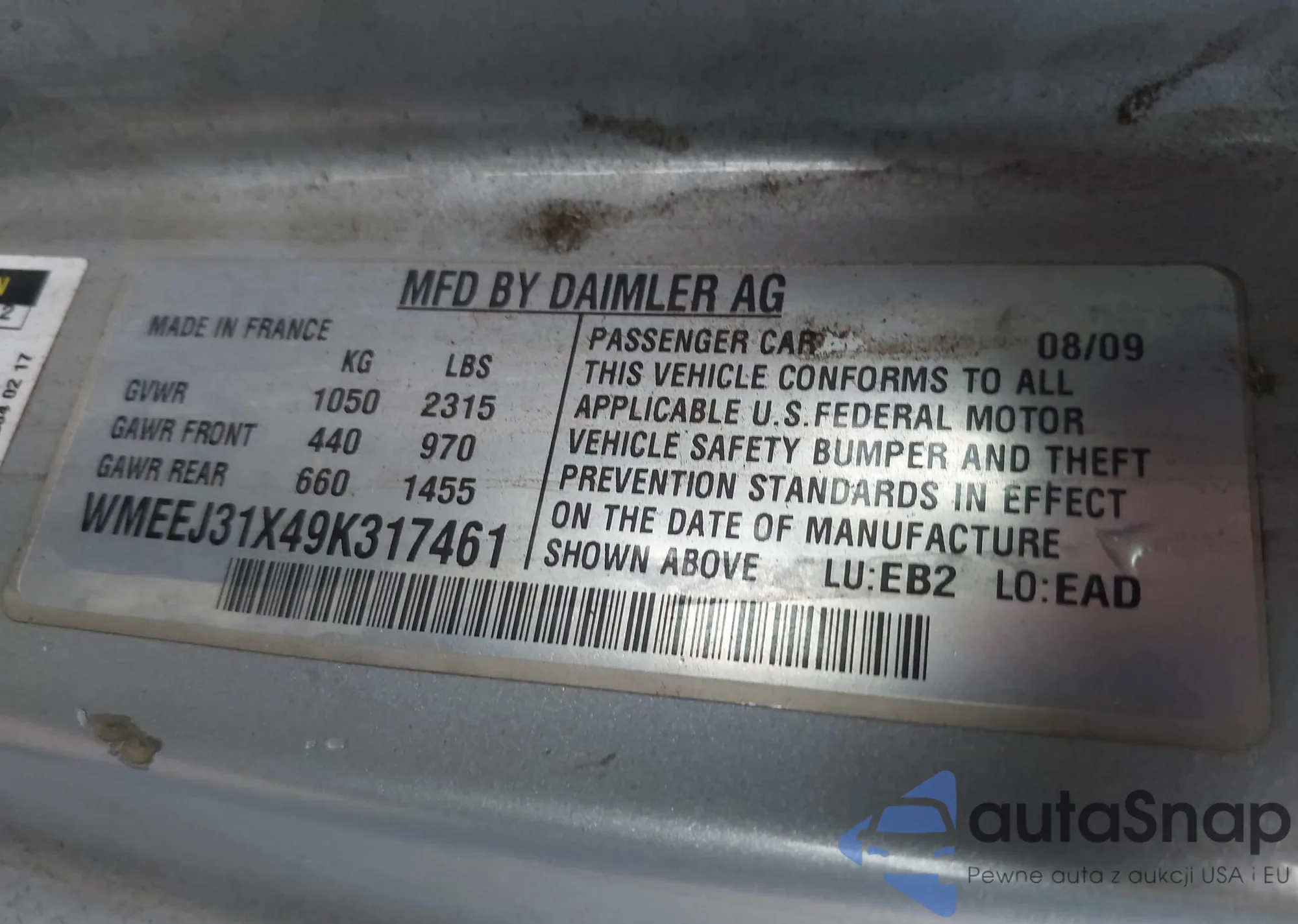• VIN: WMEEJ31X49K317461