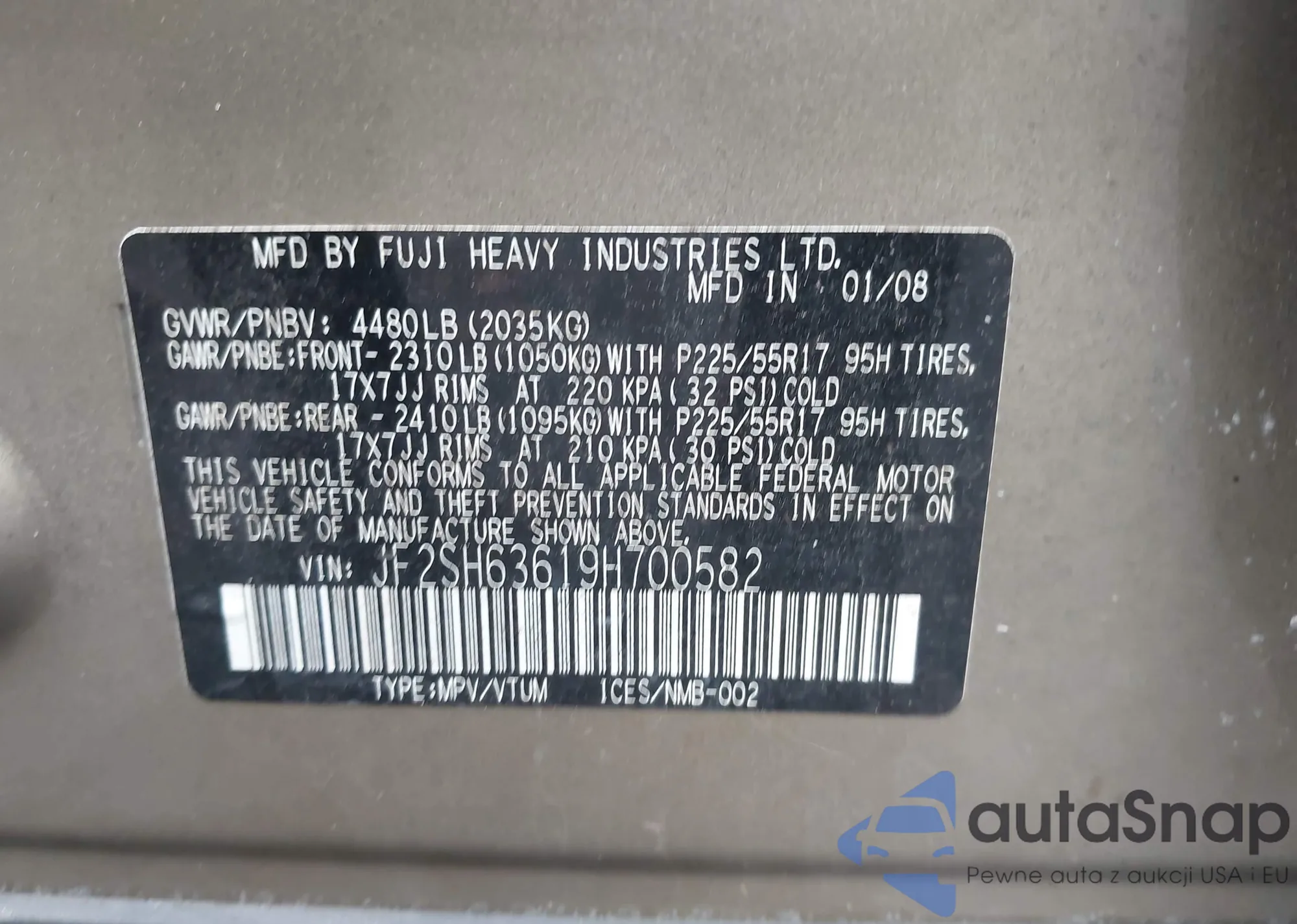 VIN: JF2SH63619H700582