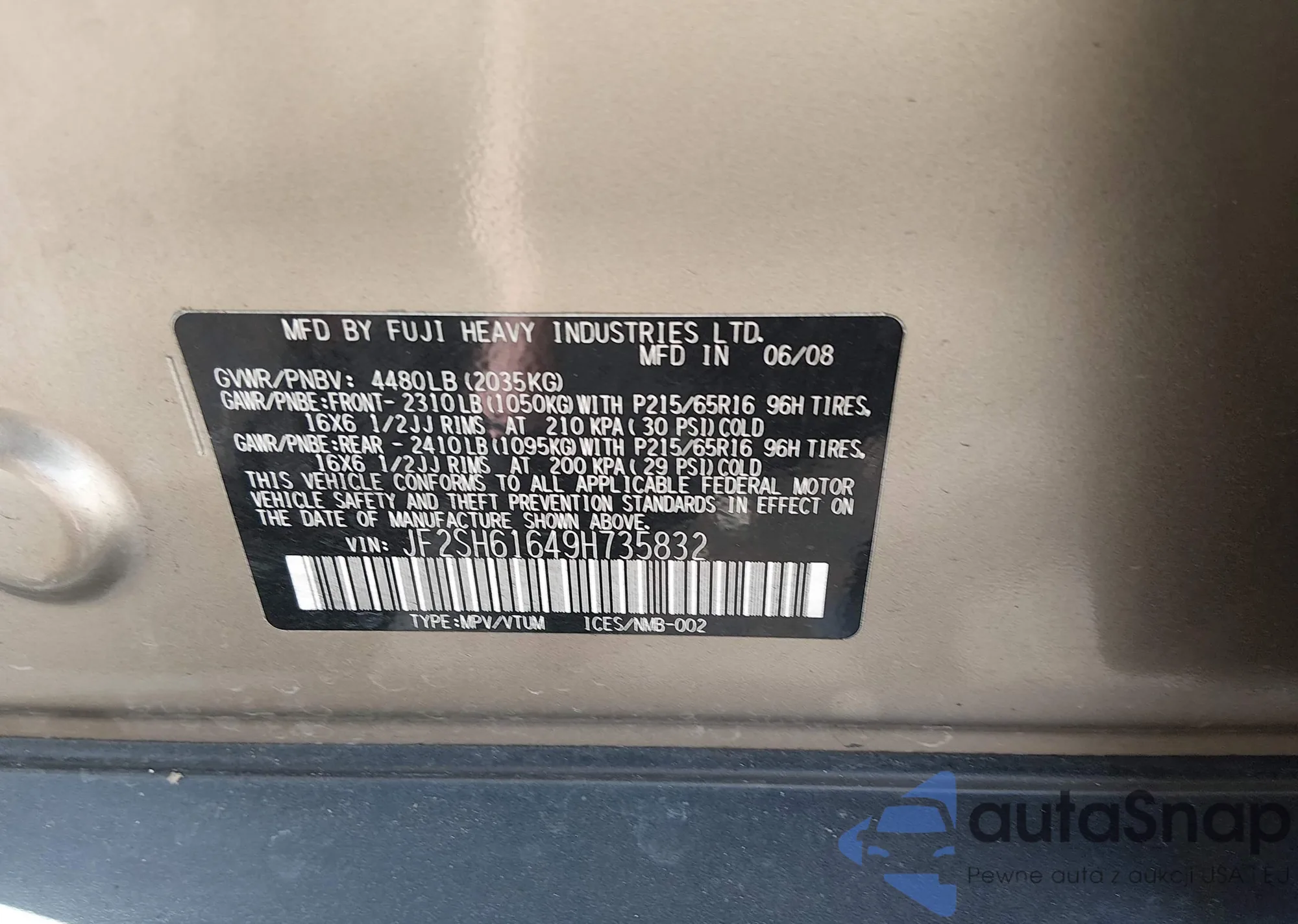 The car Subaru Forester 2009 (VIN JF2SH61649H735832) is sold by an unverified seller. We recommend checking the Carfax report and confirming registration possibilities before purchase.