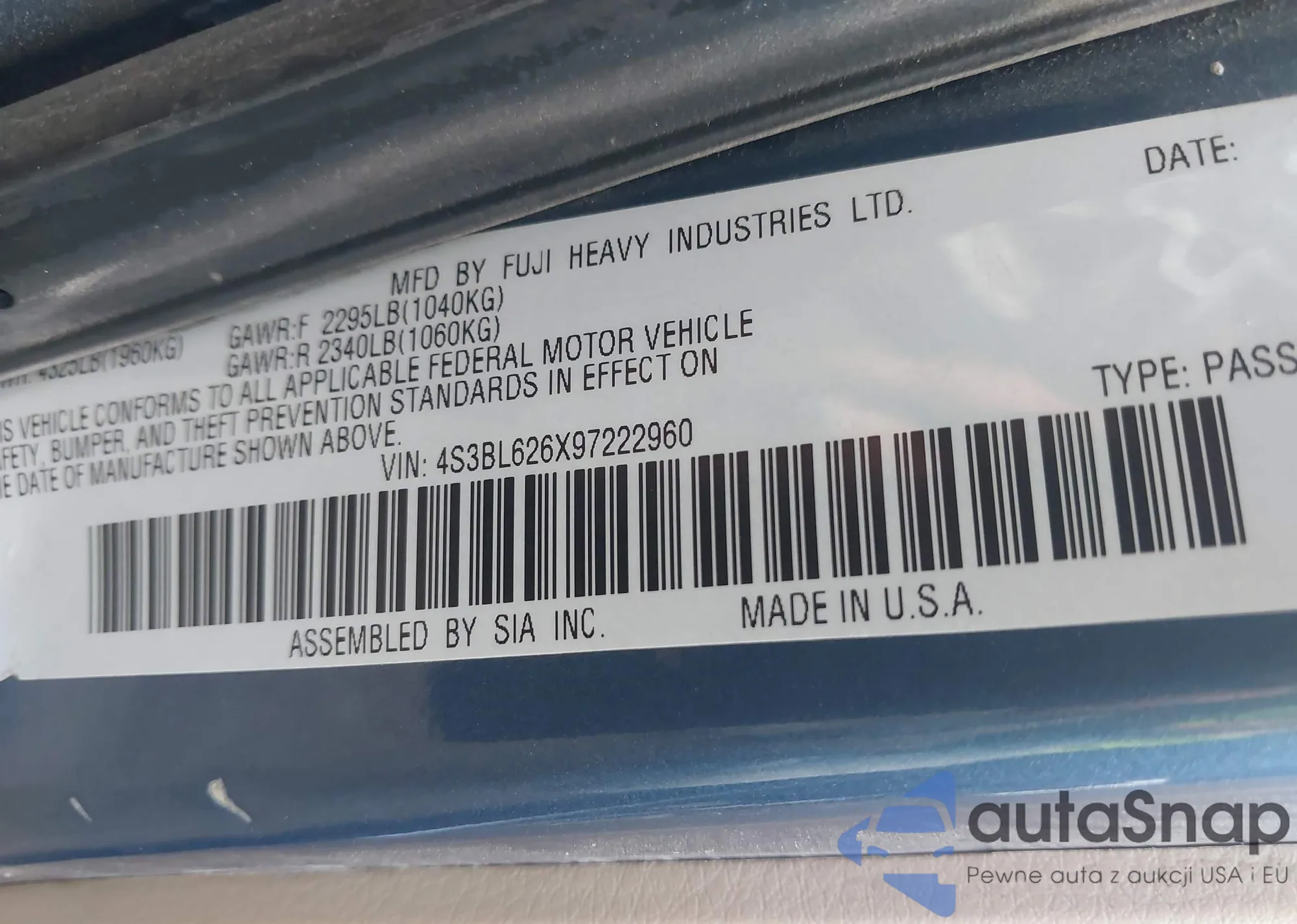 4S3BL626X97222960 IAAI