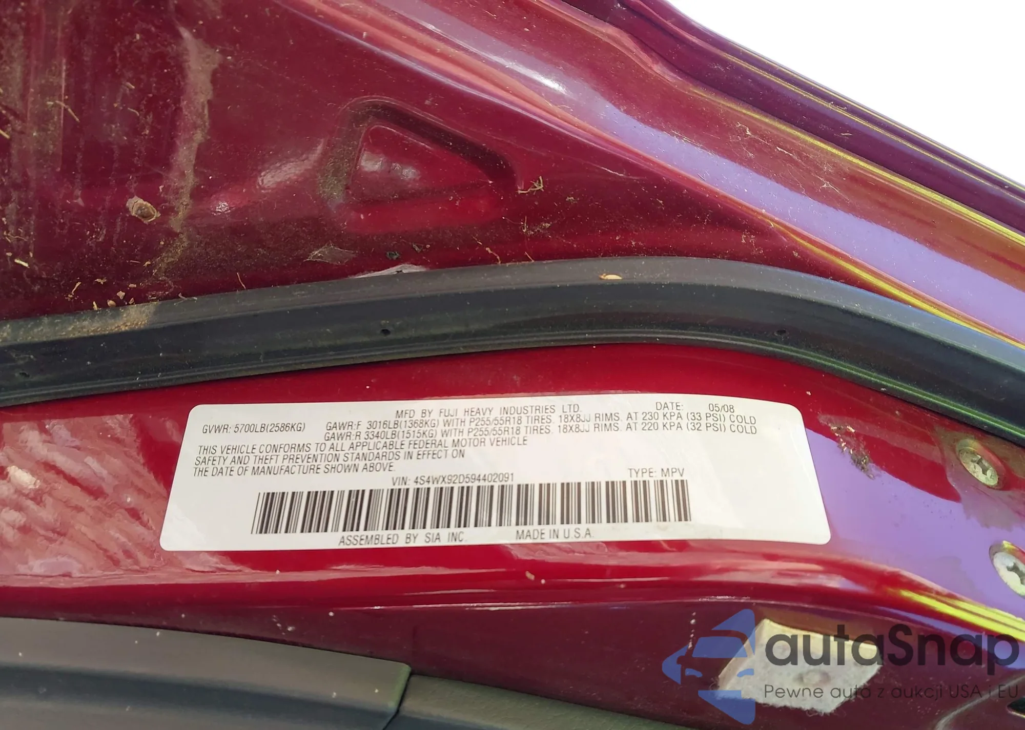 VIN: 4S4WX92D594402091