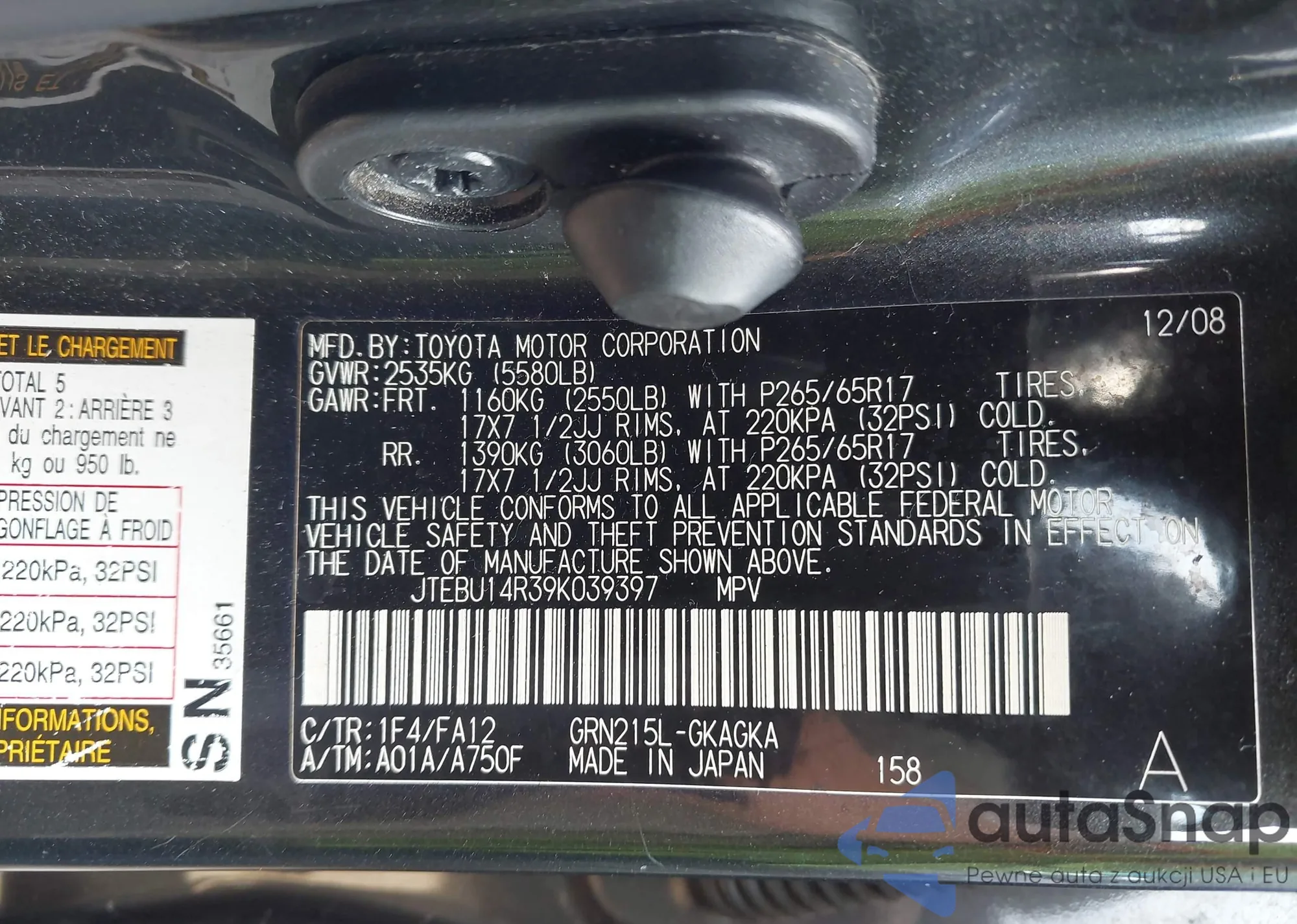 VIN: JTEBU14R39K039397