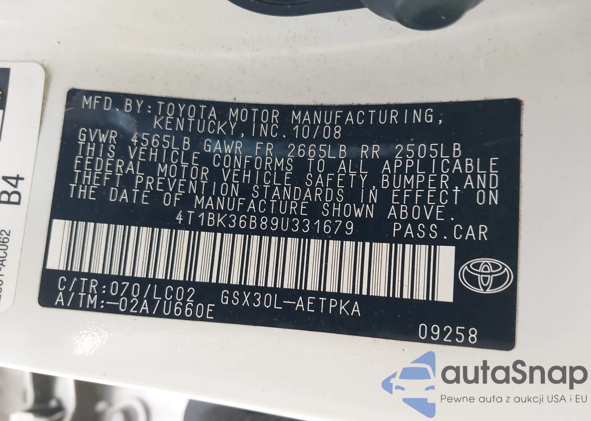 VIN: 4T1BK36B89U331679