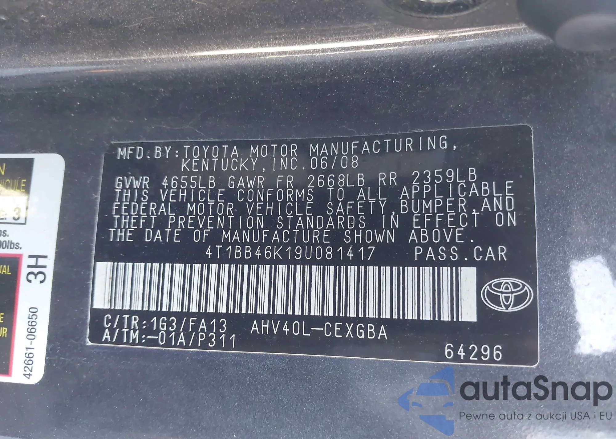 VIN: 4T1BB46K19U081417
