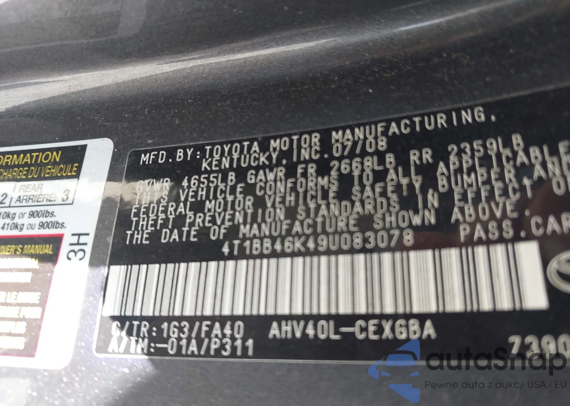 VIN: 4T1BB46K49U083078