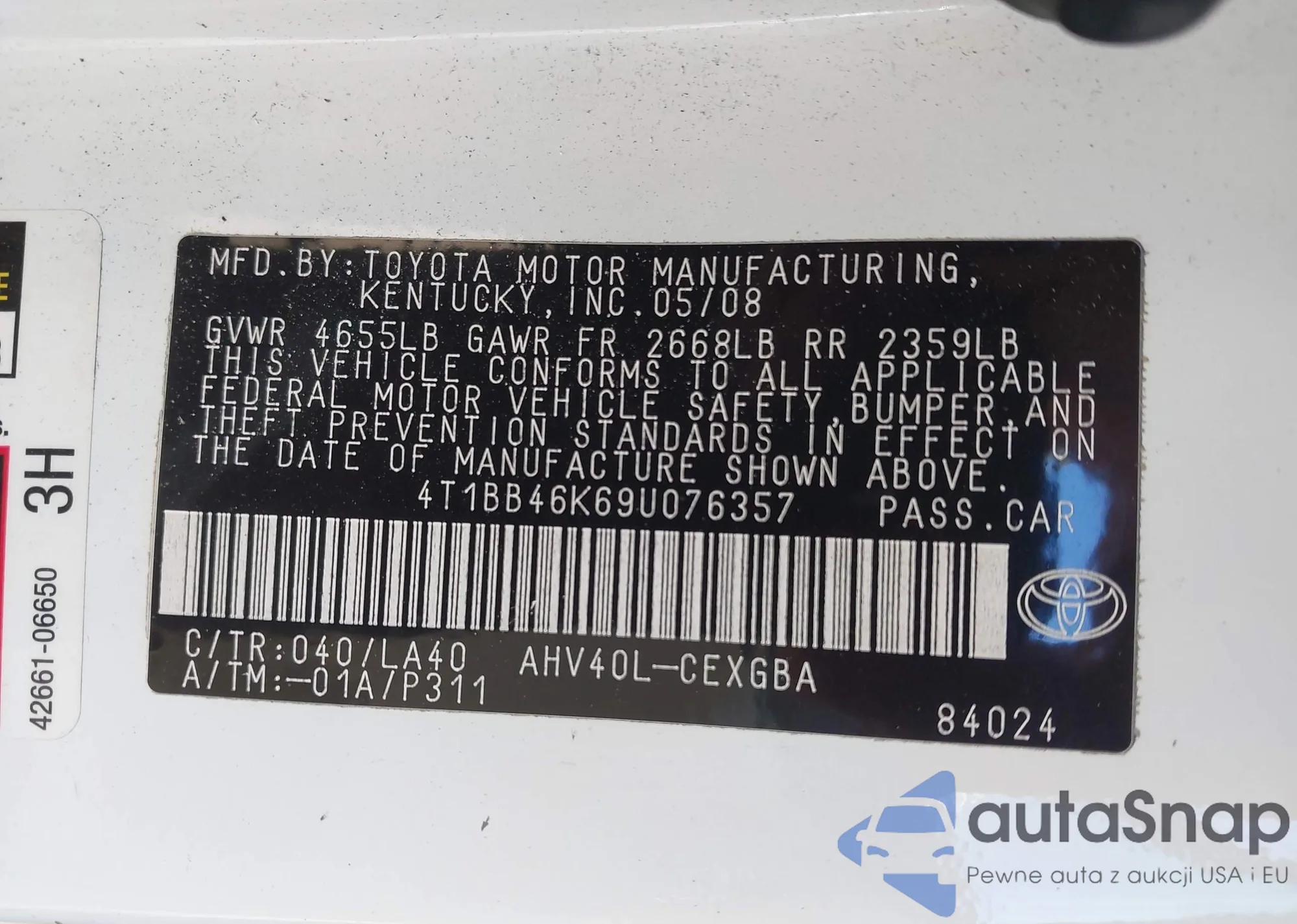 • VIN: 4T1BB46K69U076357