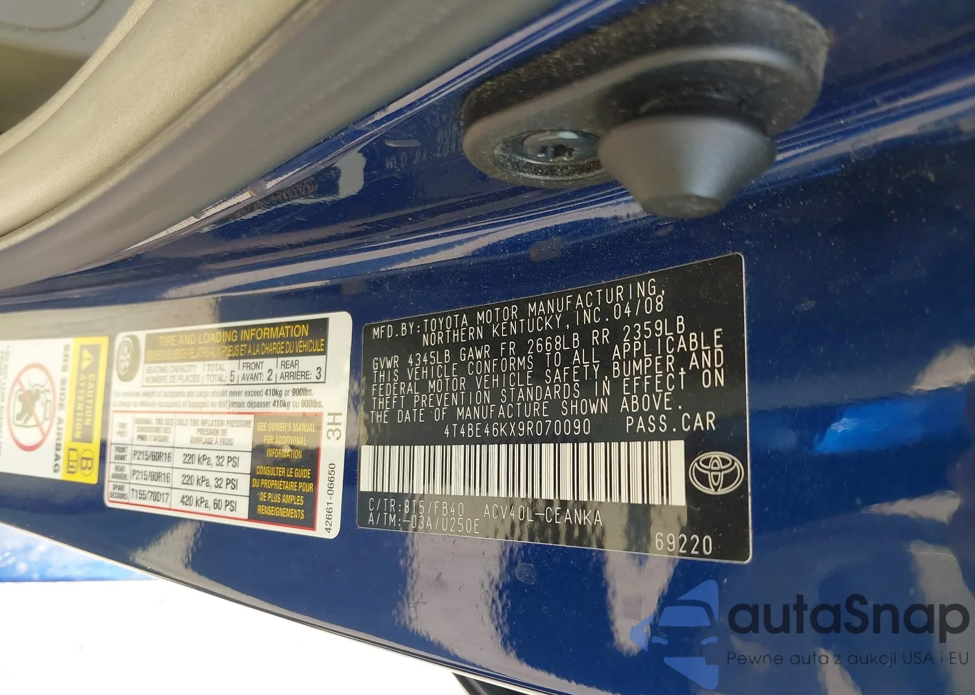 VIN: 4T4BE46KX9R070090