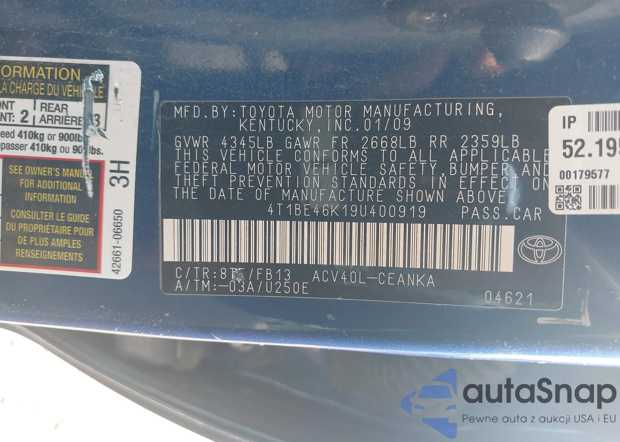 VIN: 4T1BE46K19U400919