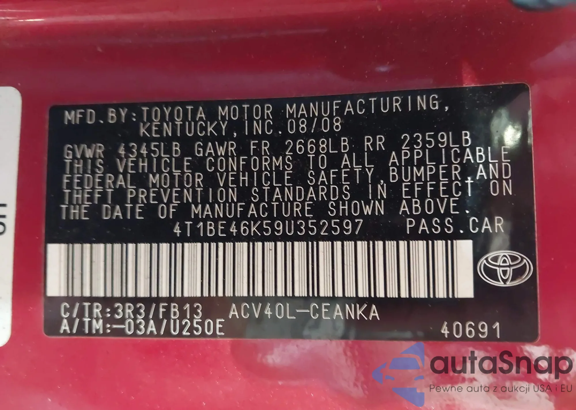 VIN: 4T1BE46K59U352597