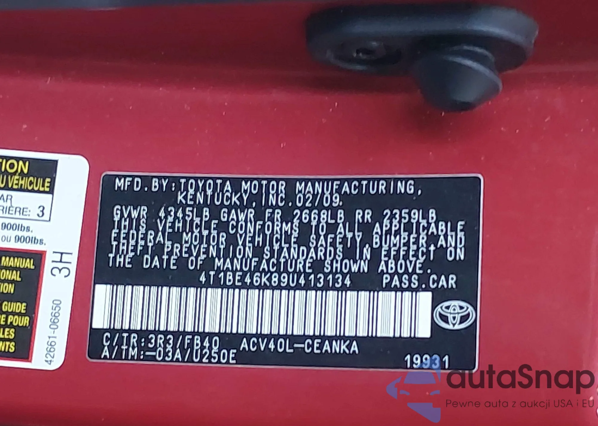 VIN: 4T1BE46K89U413134