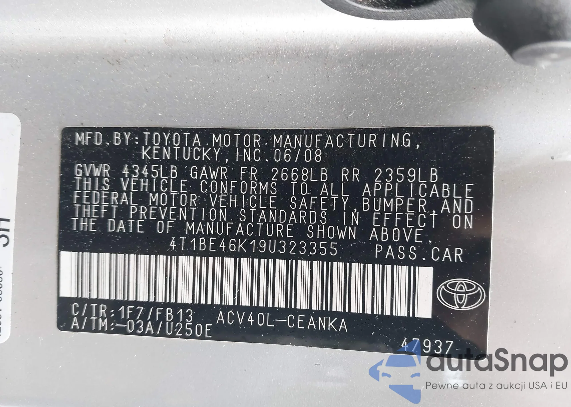 VIN: 4T1BE46K19U323355