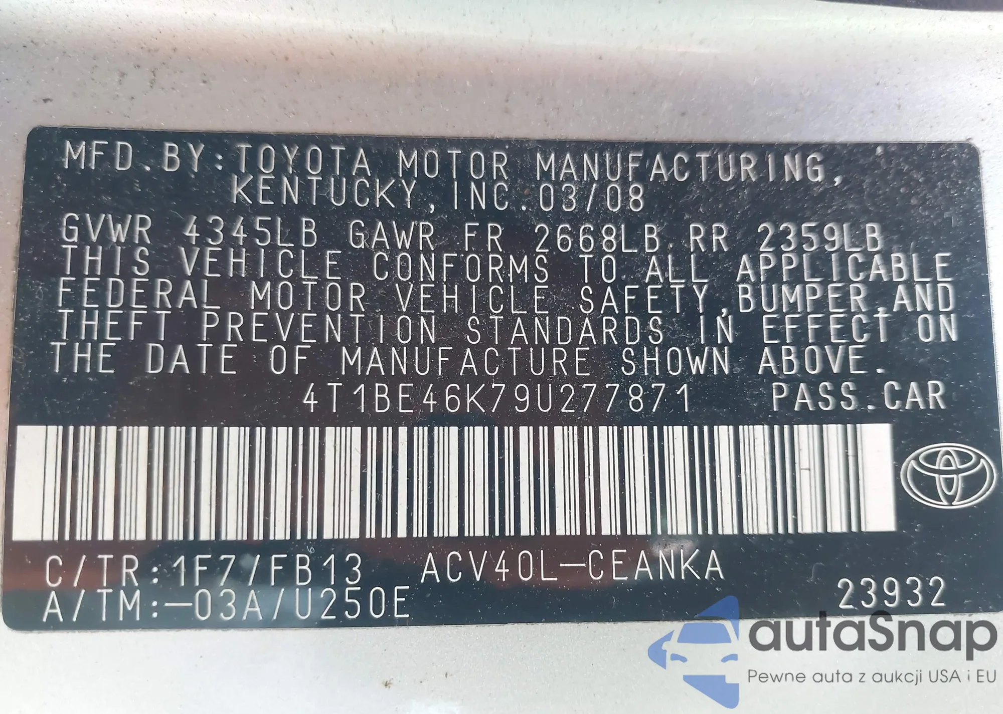 VIN: 4T1BE46K79U277871