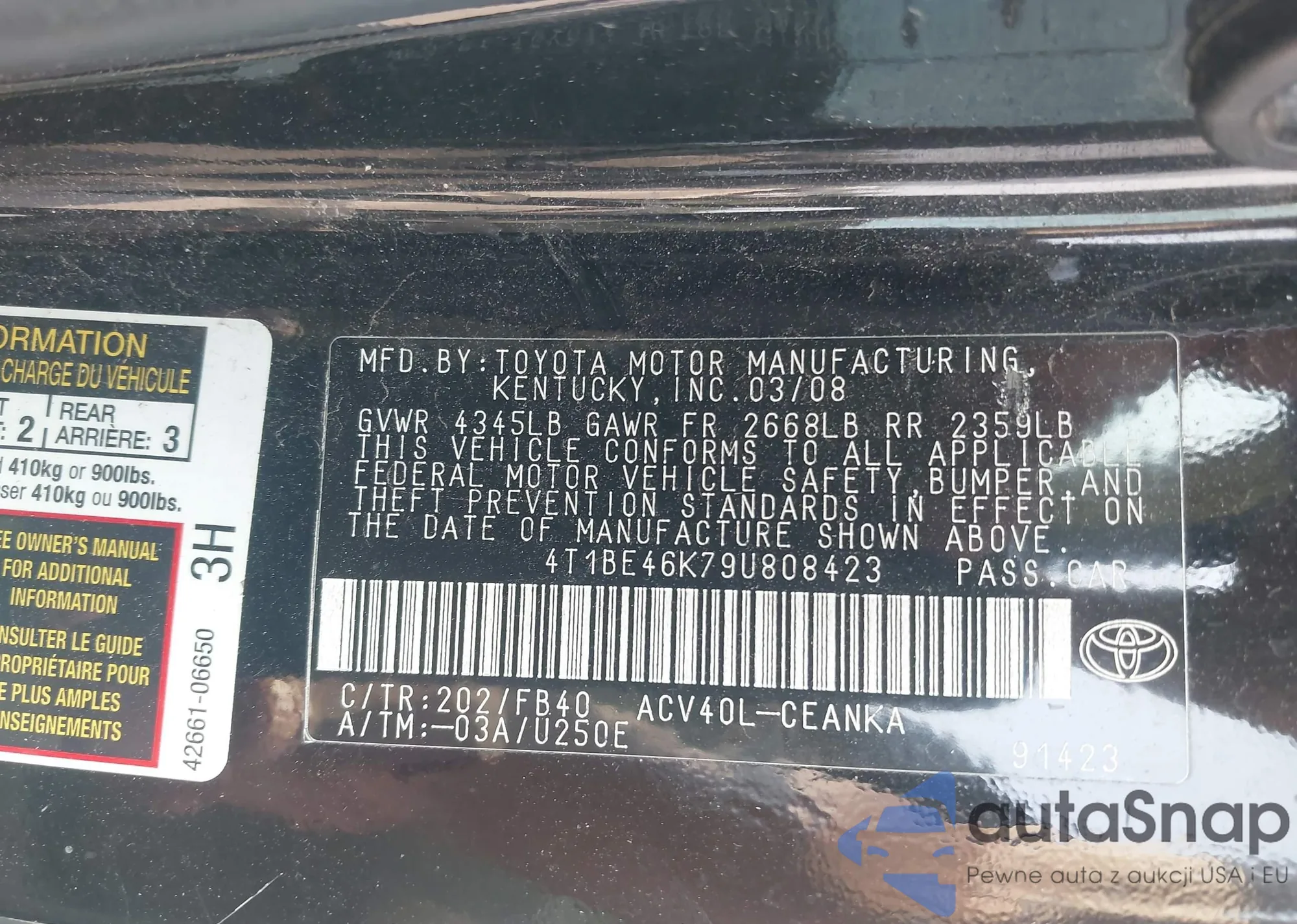 VIN: 4T1BE46K79U808423