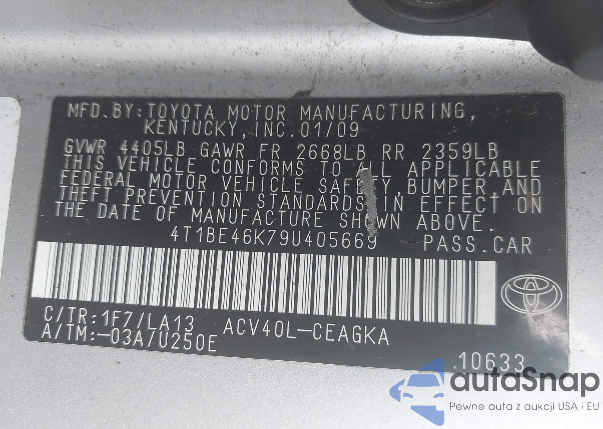 VIN: 4T1BE46K79U405669