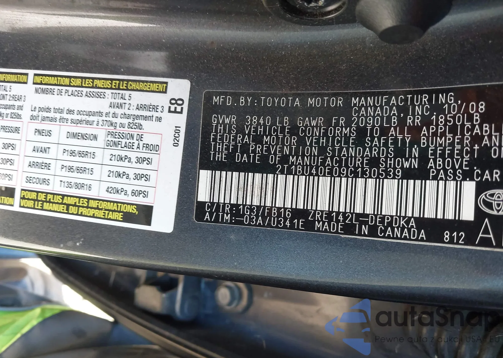 VIN: 2T1BU40E09C130539
