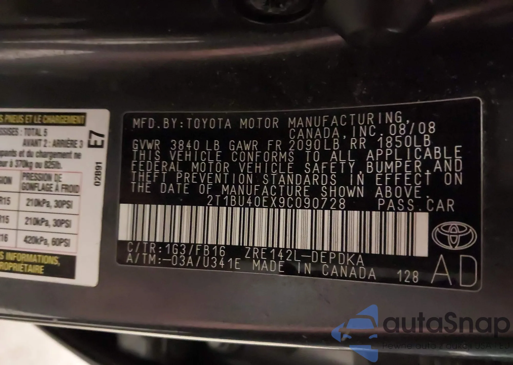 VIN: 2T1BU40EX9C090728