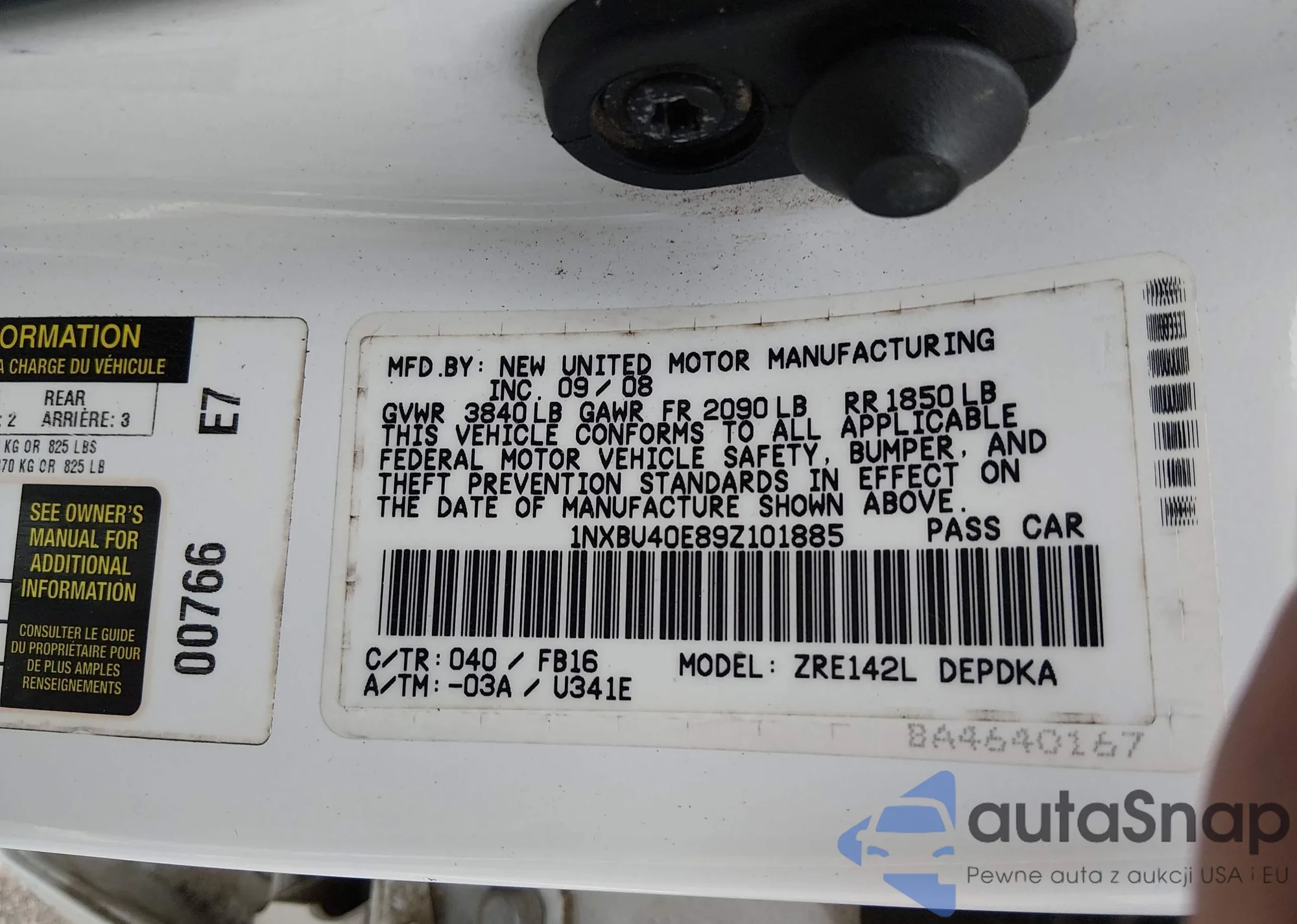The car Toyota Corolla 2009 (VIN 1NXBU40E89Z101885) is sold by an unverified seller. We recommend checking the Carfax report and confirming registration possibilities before purchase.