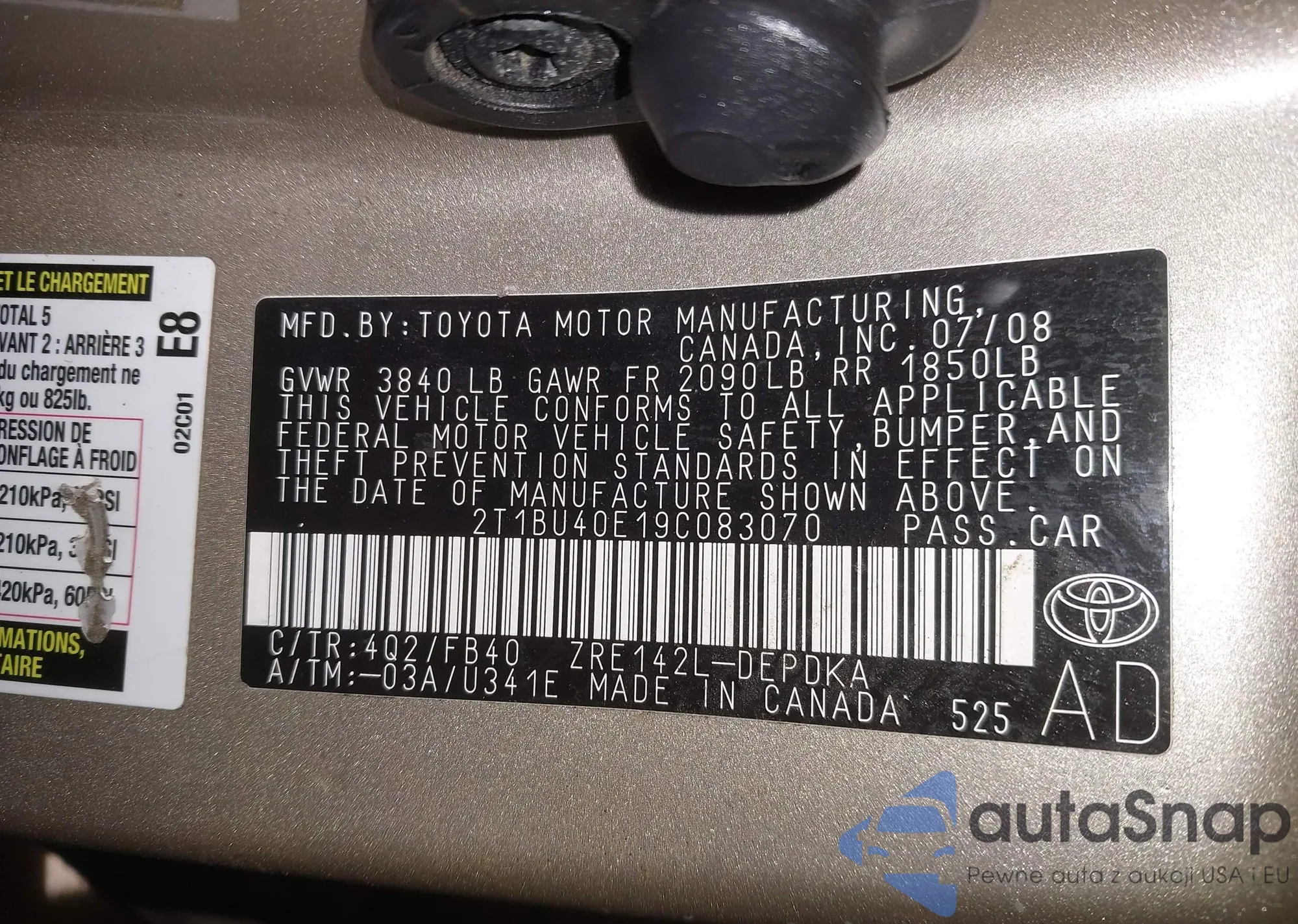 VIN: 2T1BU40E19C083070