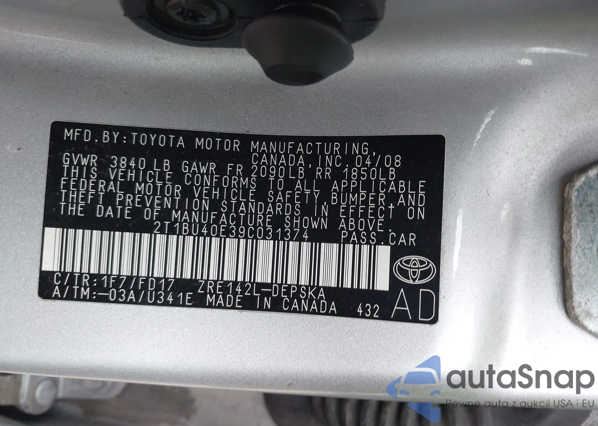 VIN: 2T1BU40E39C031374