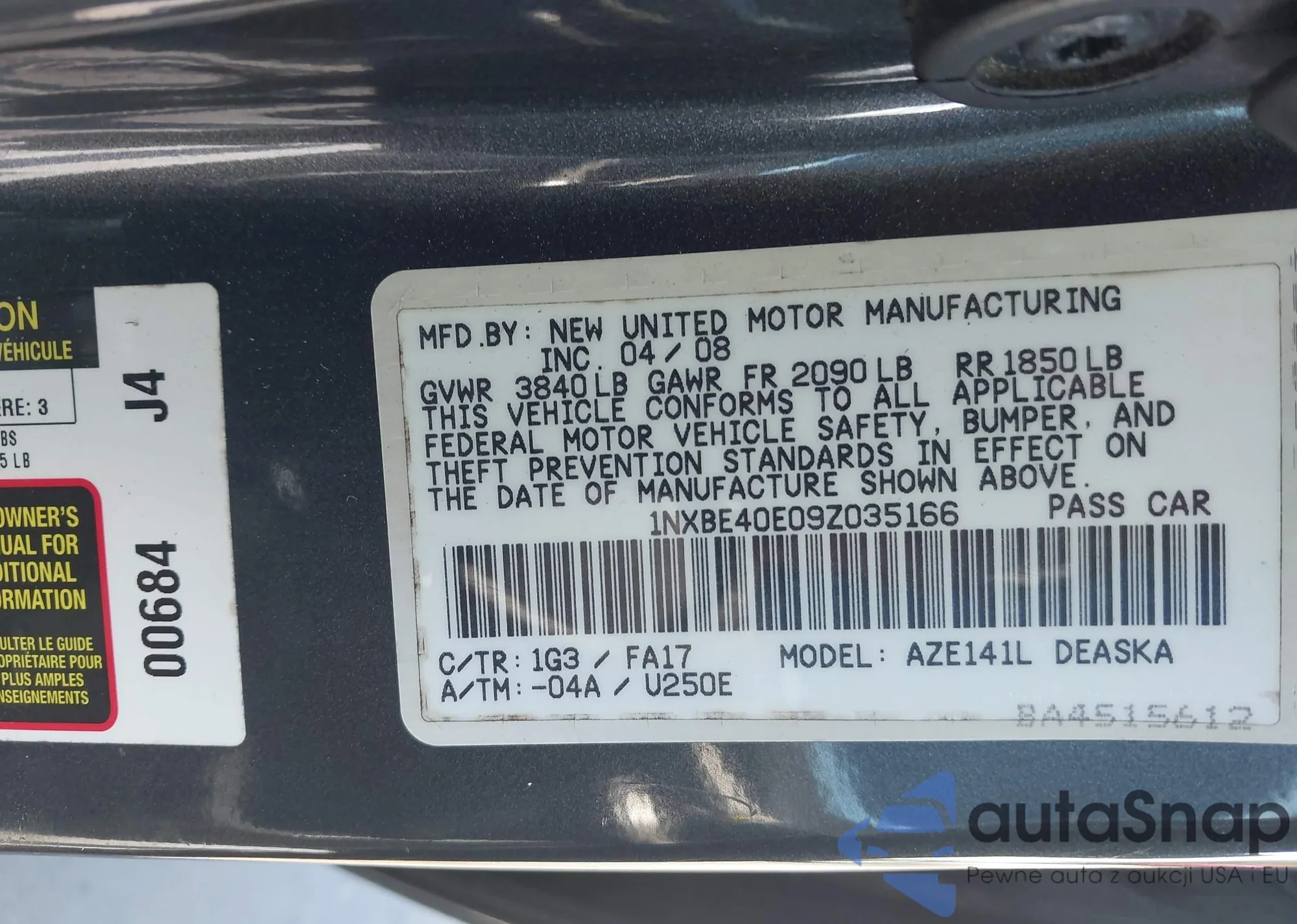 VIN: 1NXBE40E09Z035166