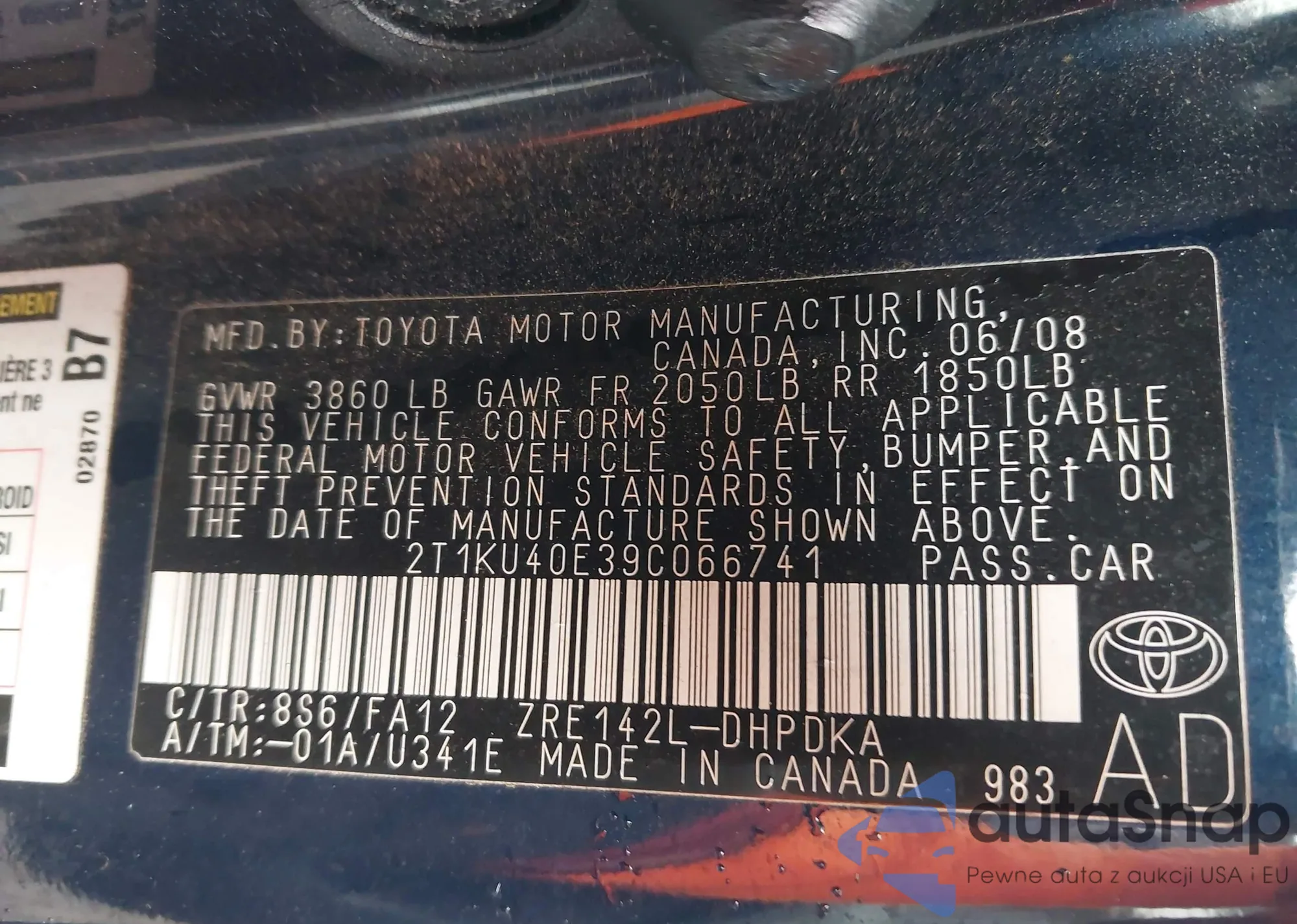 The car Toyota Matrix 2009 (VIN 2T1KU40E39C066741) is sold by an unverified seller. We recommend checking the Carfax report and confirming registration possibilities before purchase.