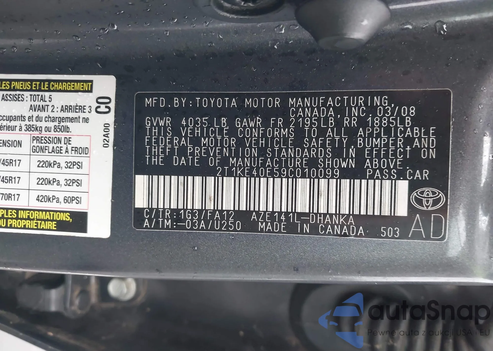 VIN: 2T1KE40E59C010099