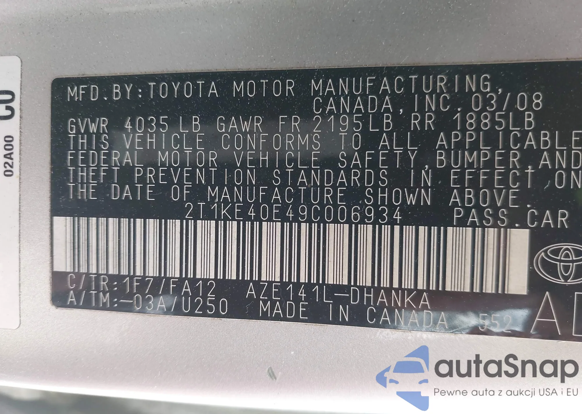 • VIN: 2T1KE40E49C006934