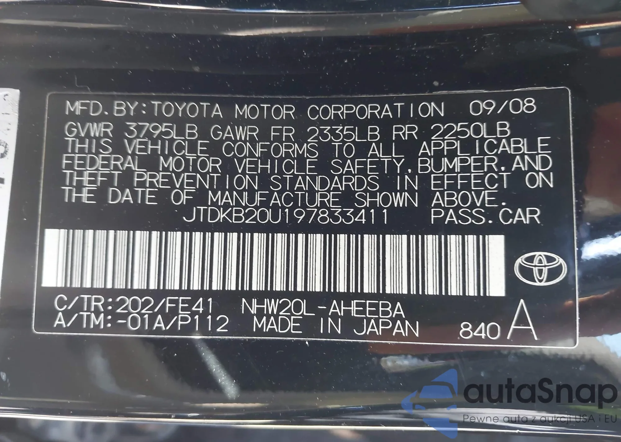 The car Toyota Prius 2009 (VIN JTDKB20U197833411) is sold by an unverified seller. We recommend checking the Carfax report and confirming registration possibilities before purchase.