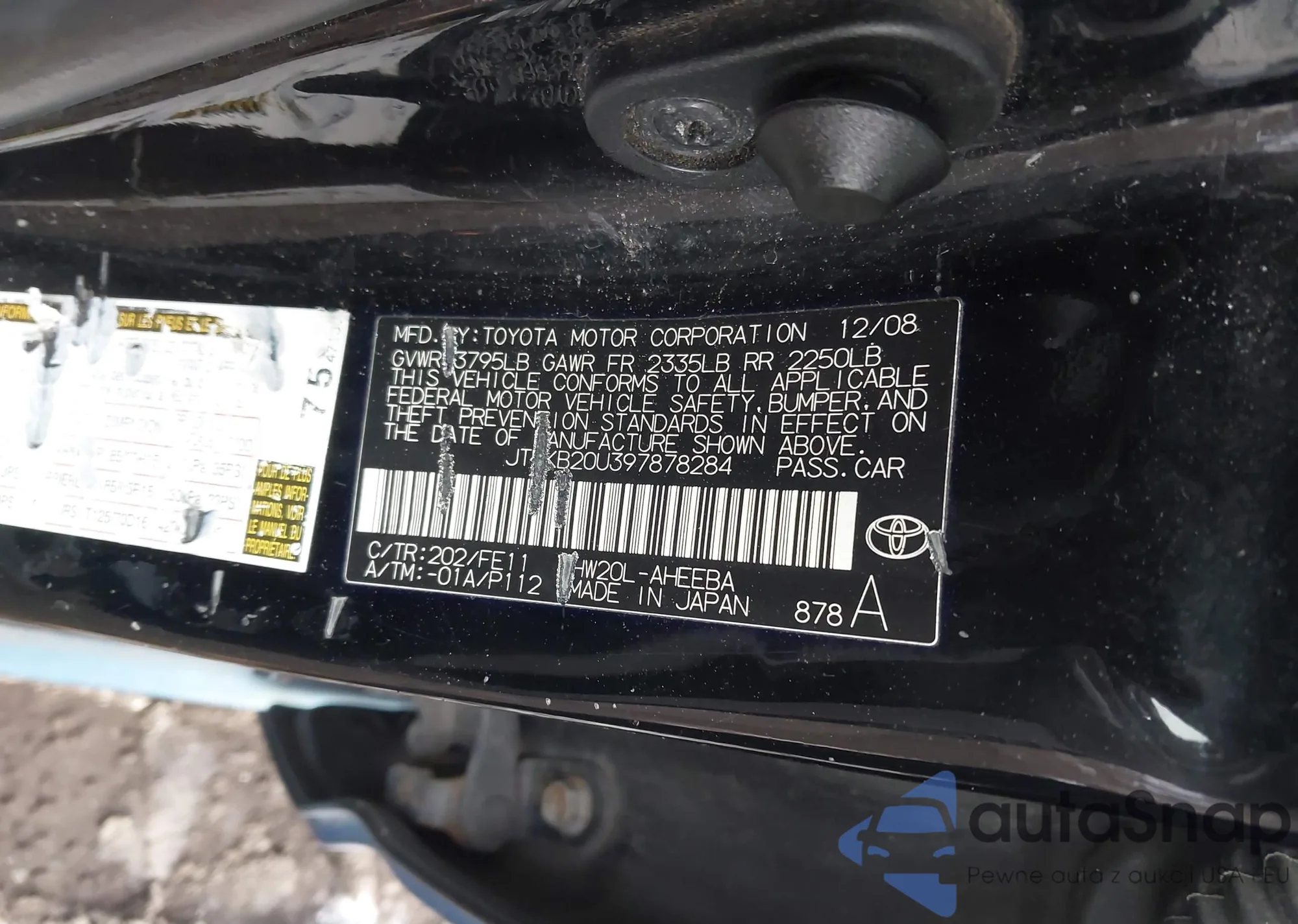 VIN: JTDKB20U397878284