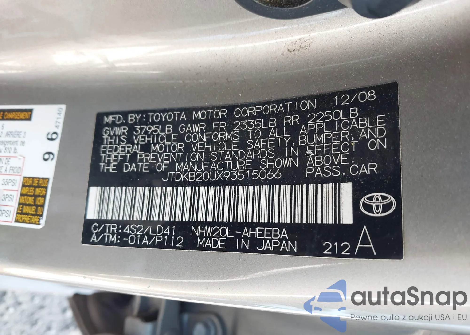 The car Toyota Prius 2009 (VIN JTDKB20UX93515066) has not been auctioned before. The documents are clean, and the mileage matches or is below the market average. Sold by an insurance company – we recommend purchase. Delivery to the port will take approx. 6–8 weeks.