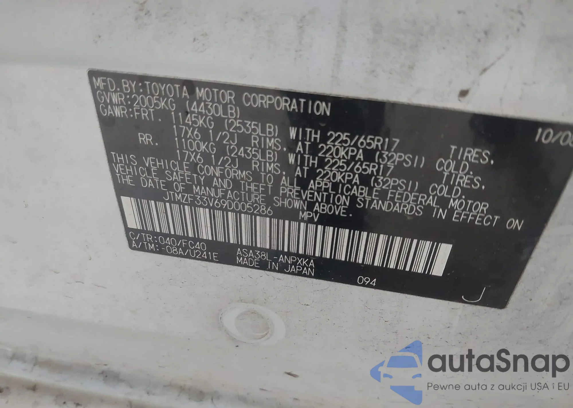 VIN: JTMZF33V69D005286
