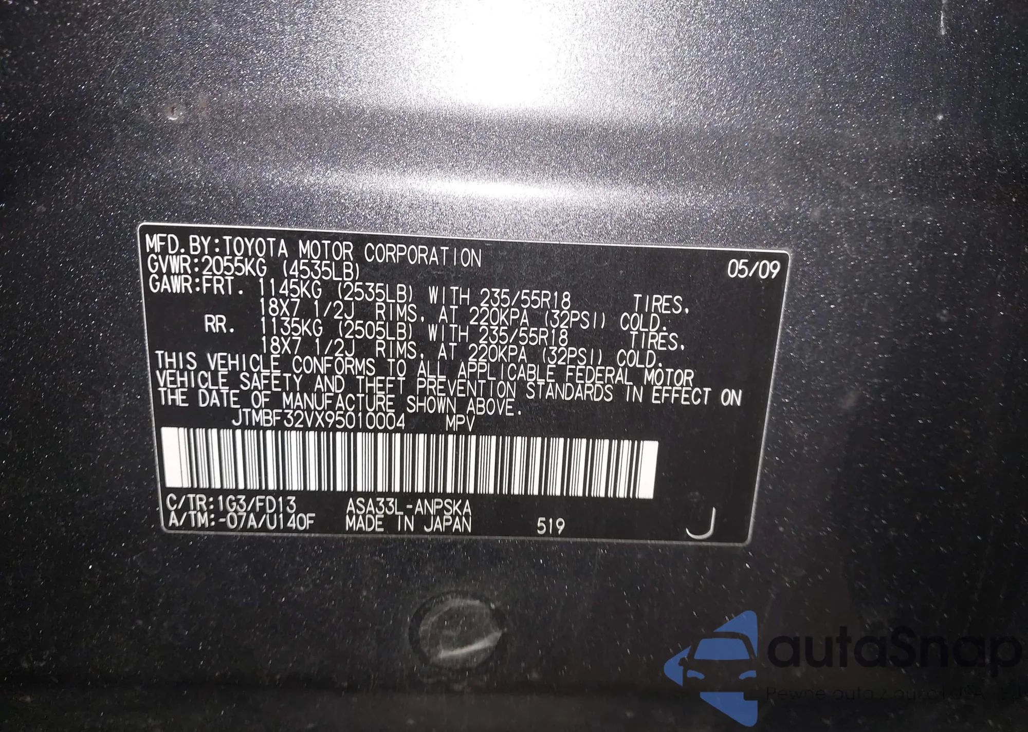 VIN: JTMBF32VX95010004