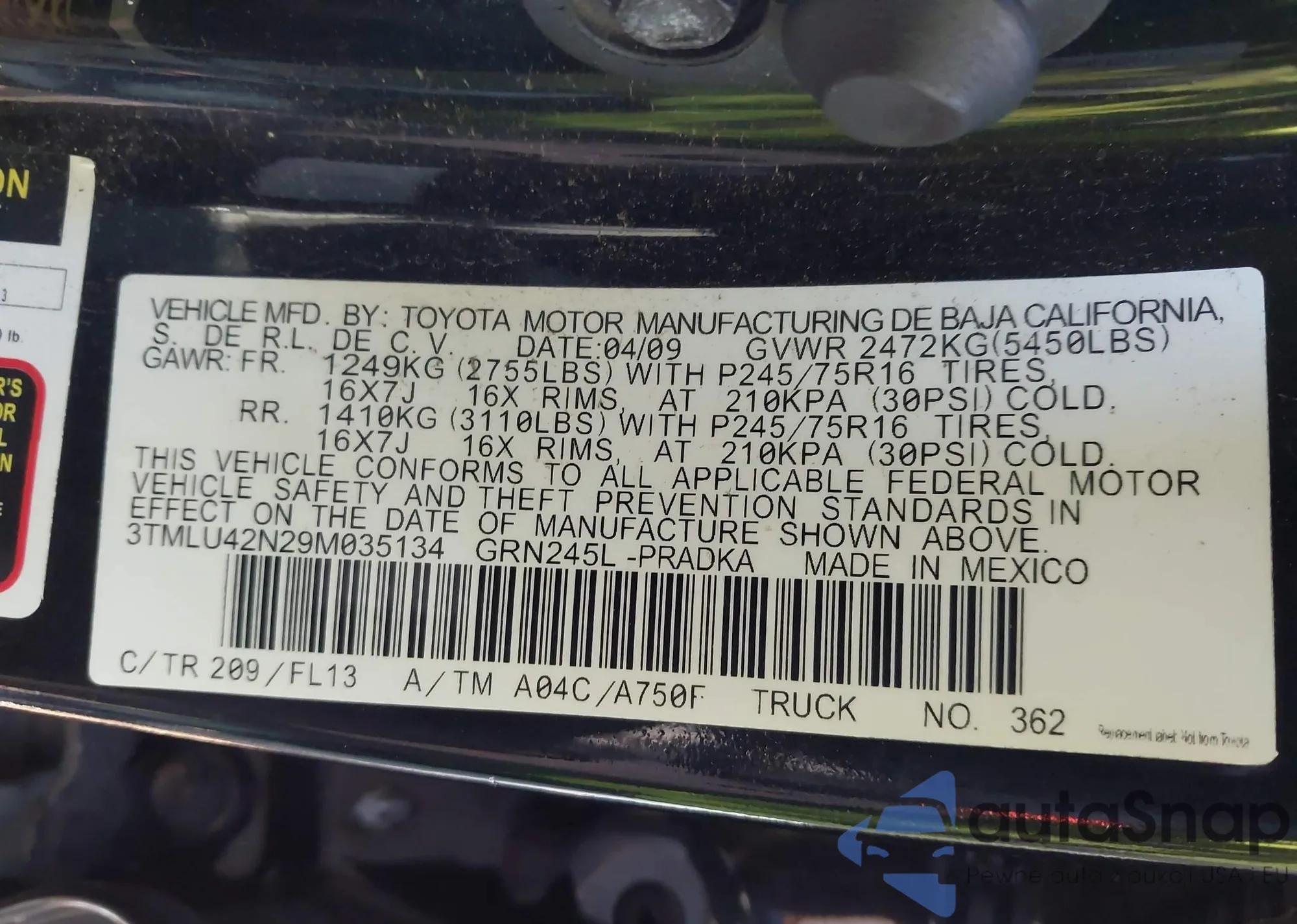 The car Toyota Tacoma 2009 (VIN 3TMLU42N29M035134) is sold by an unverified seller. We recommend checking the Carfax report and confirming registration possibilities before purchase.