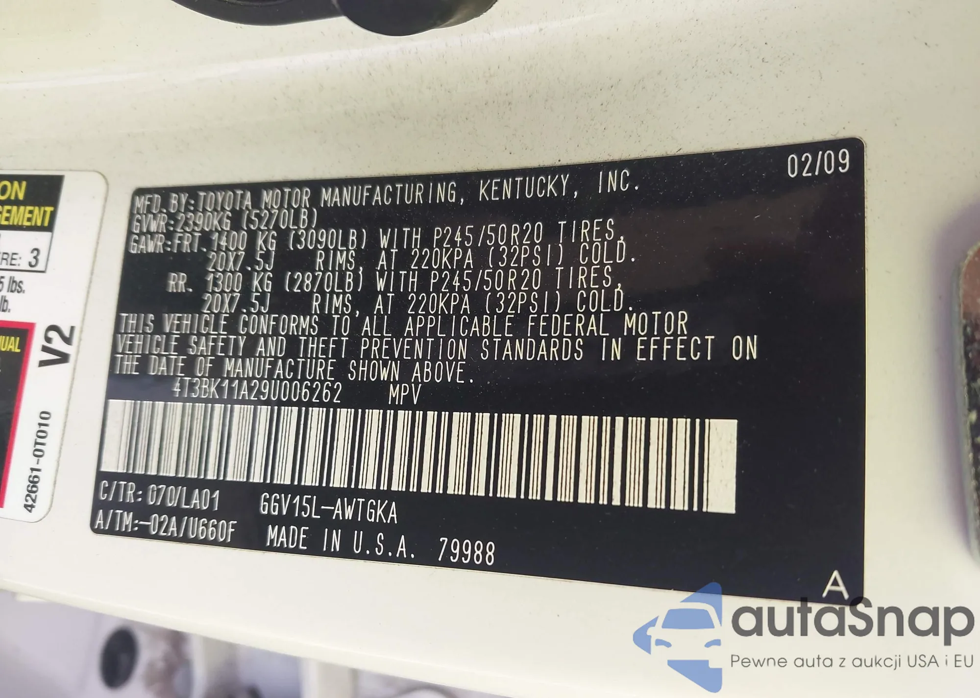 VIN: 4T3BK11A29U006262