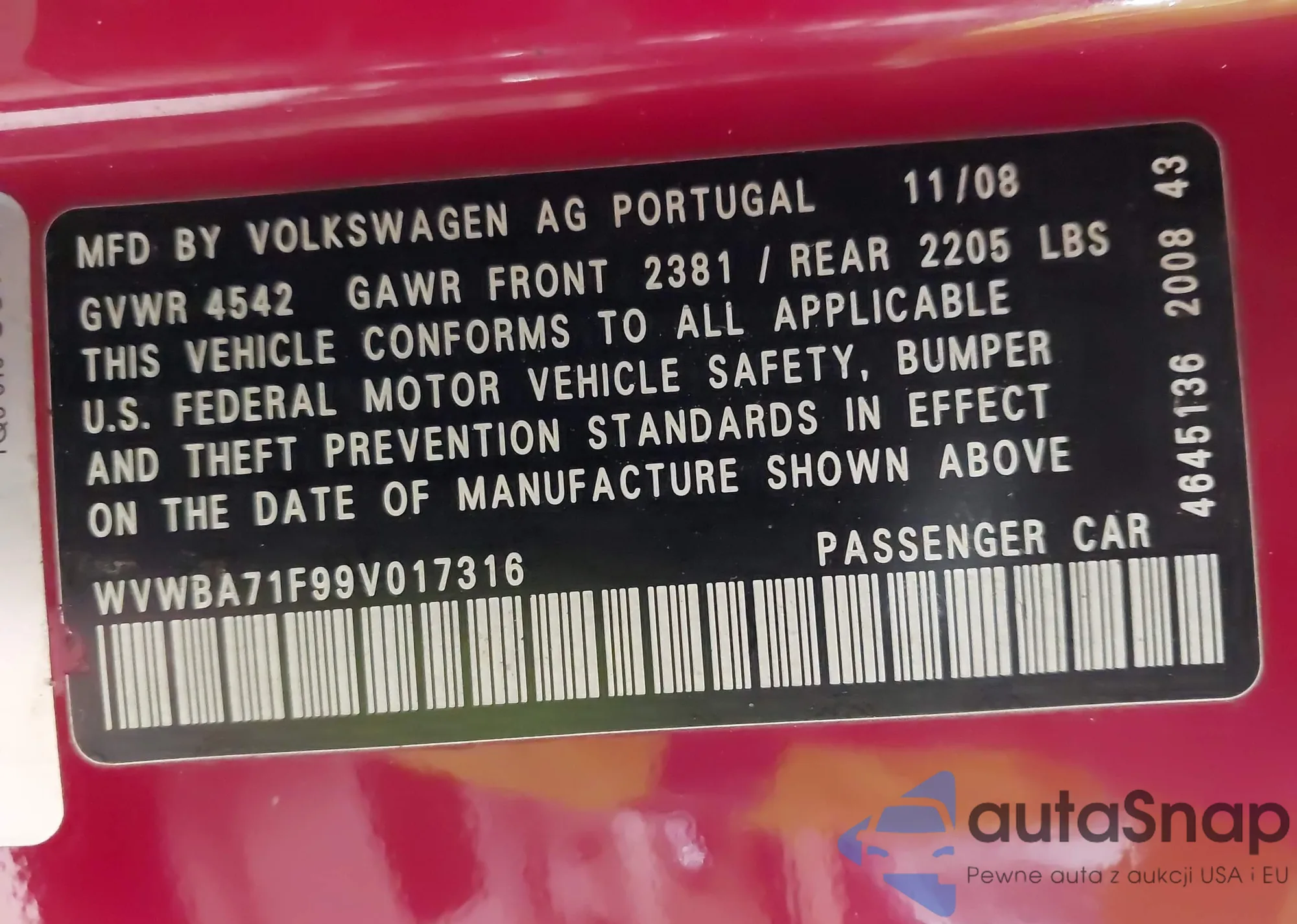VIN: WVWBA71F99V017316